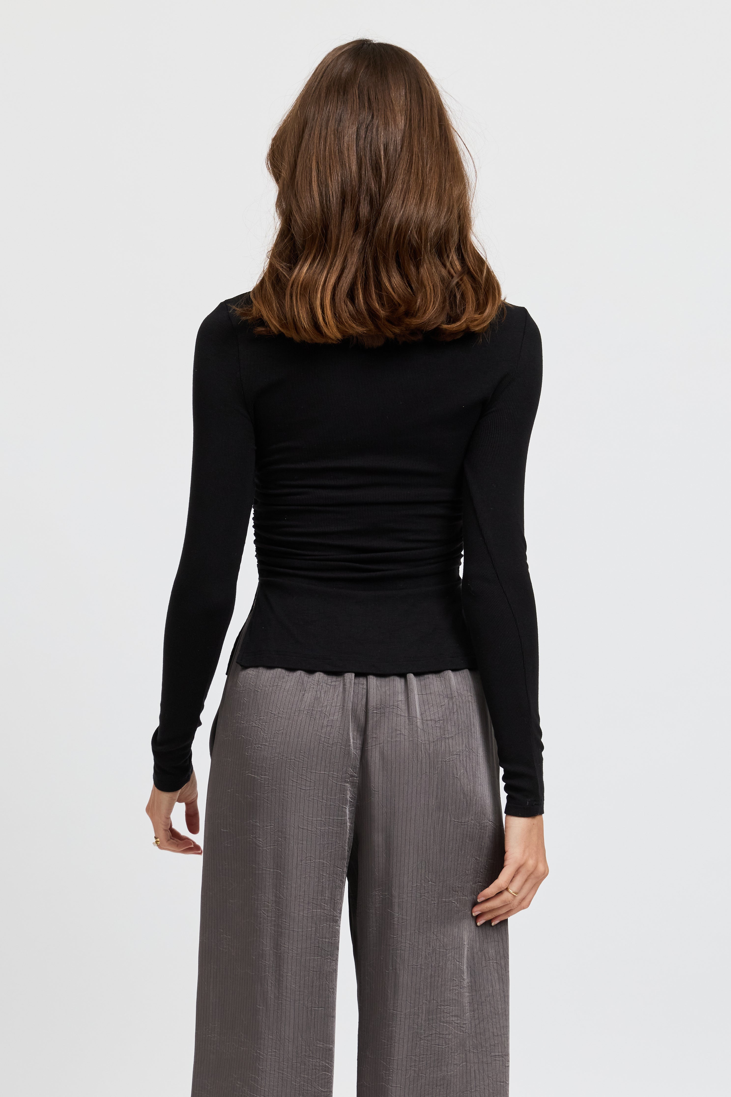 Ari Ribbed Long Sleeve Top - Black