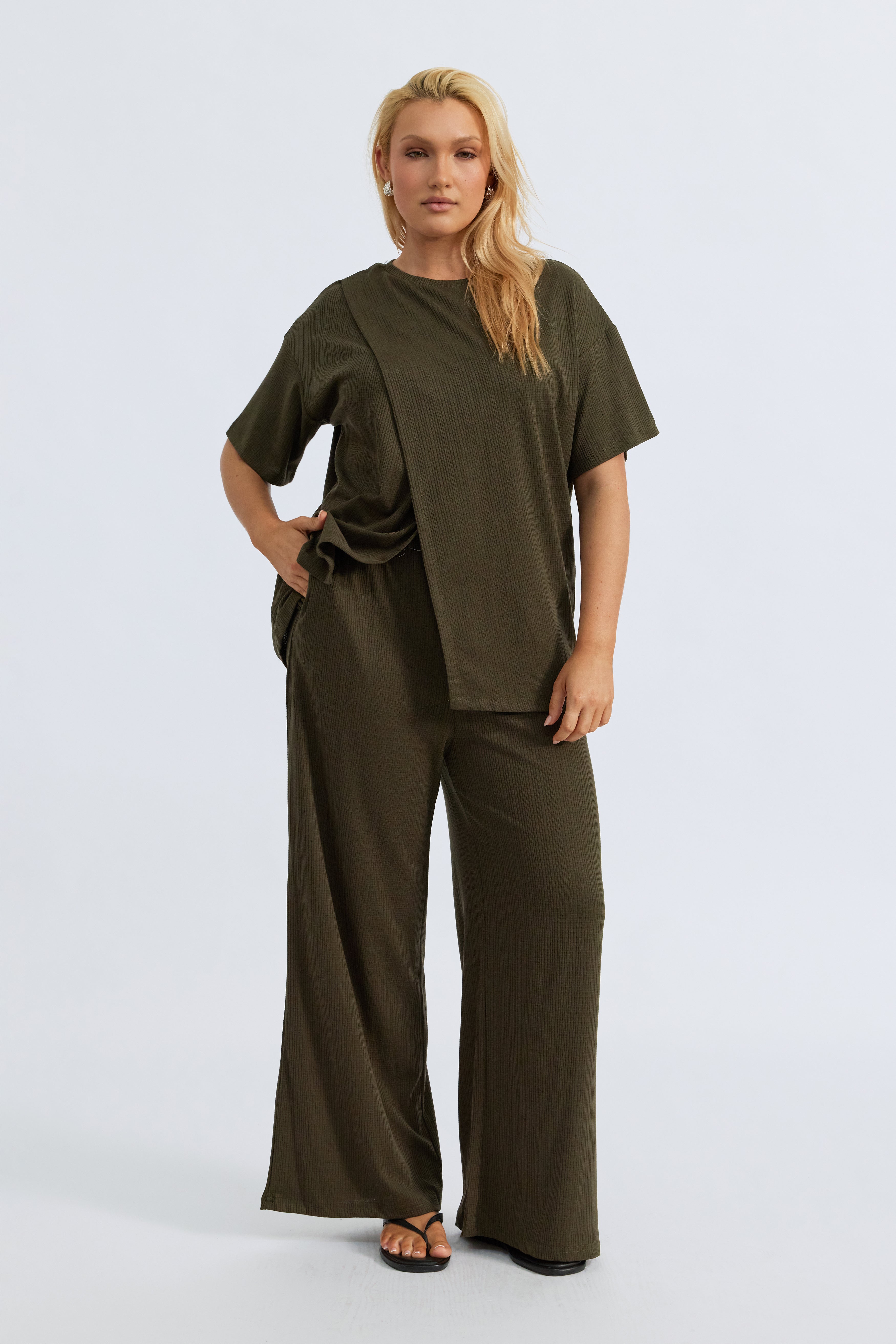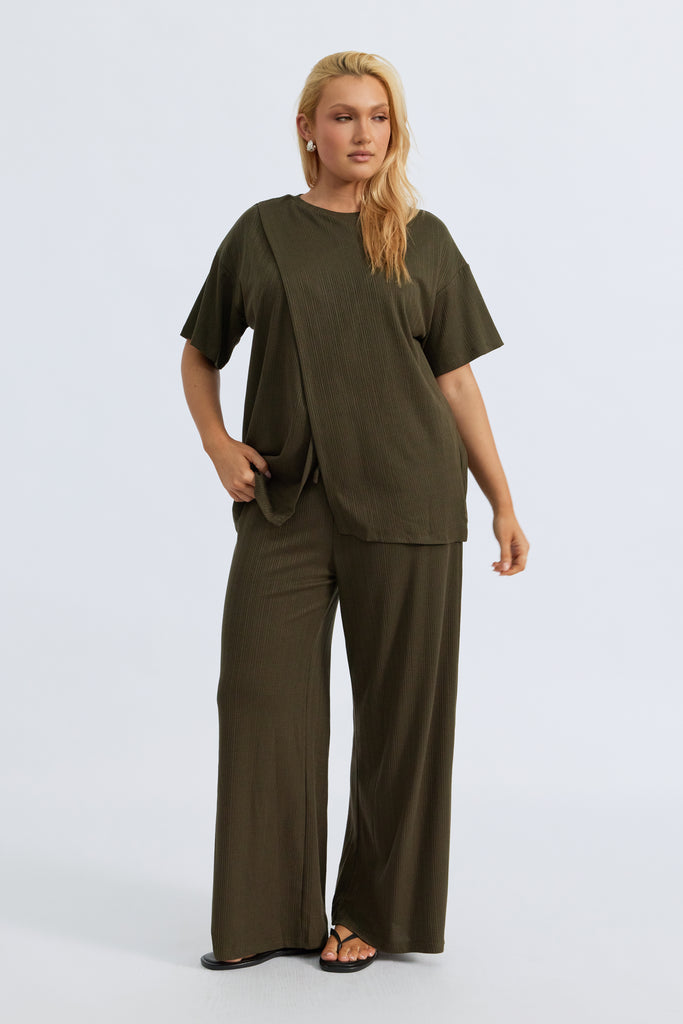 Ivy Waffle Wide Leg Pants - Olive