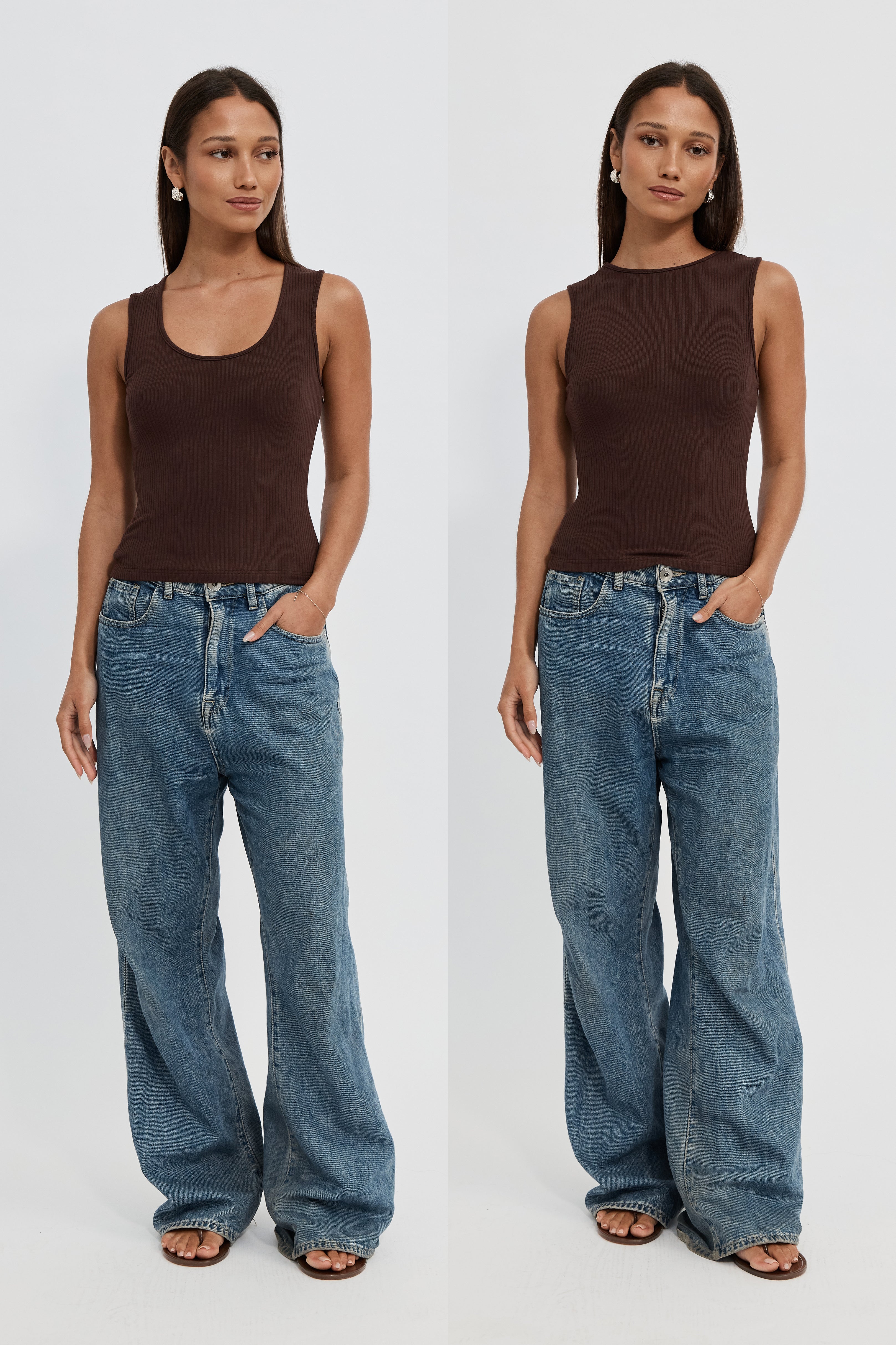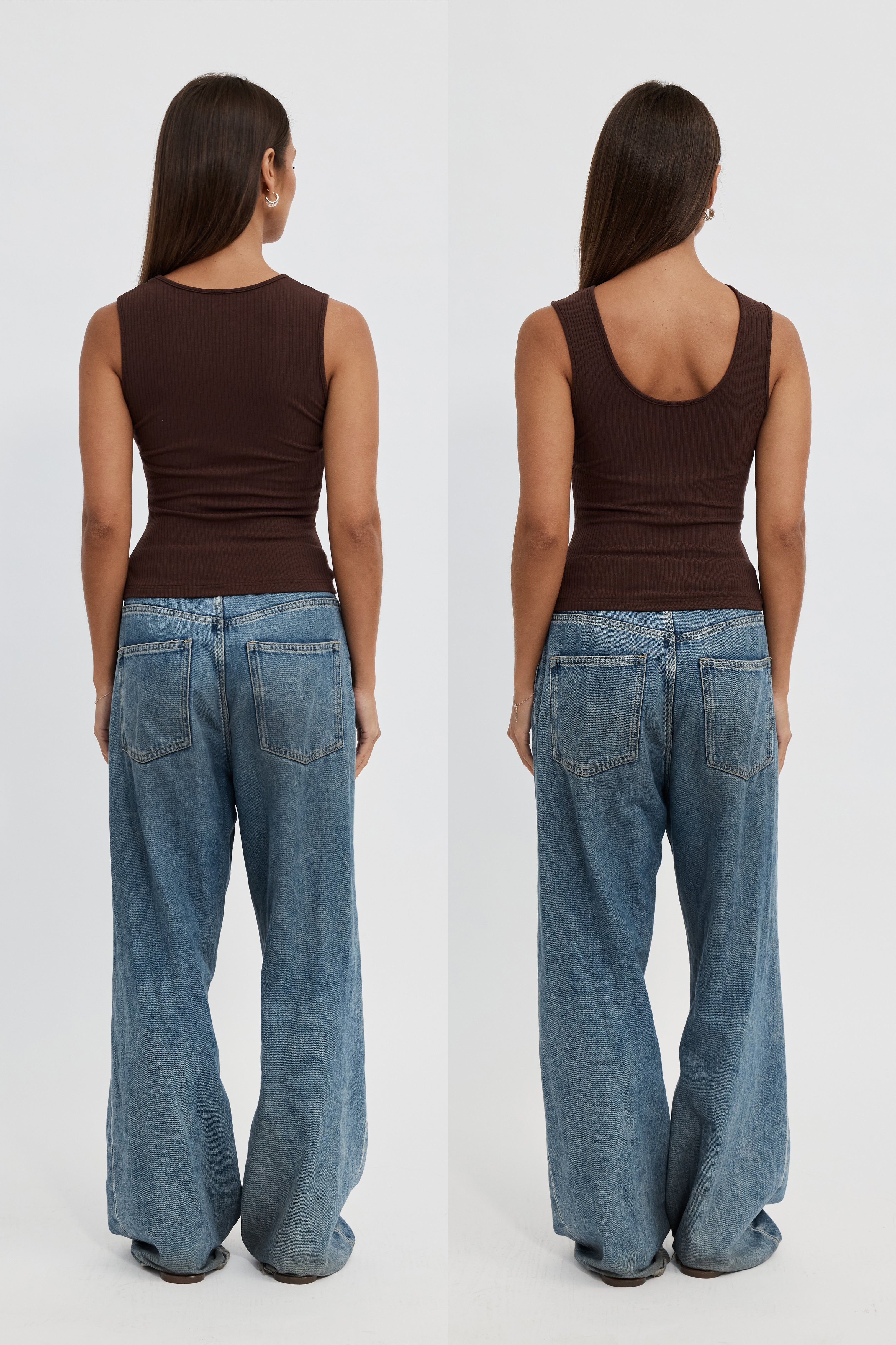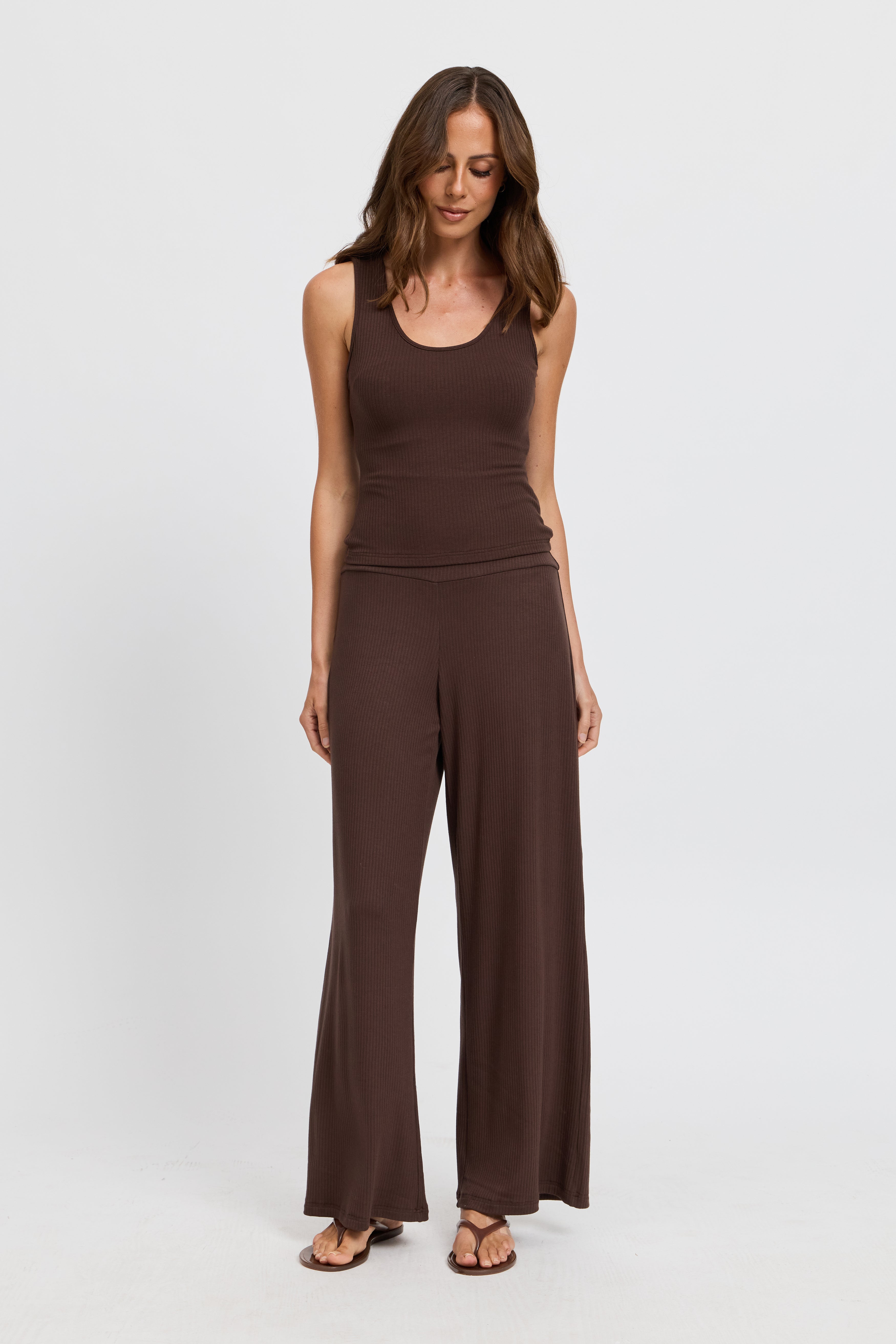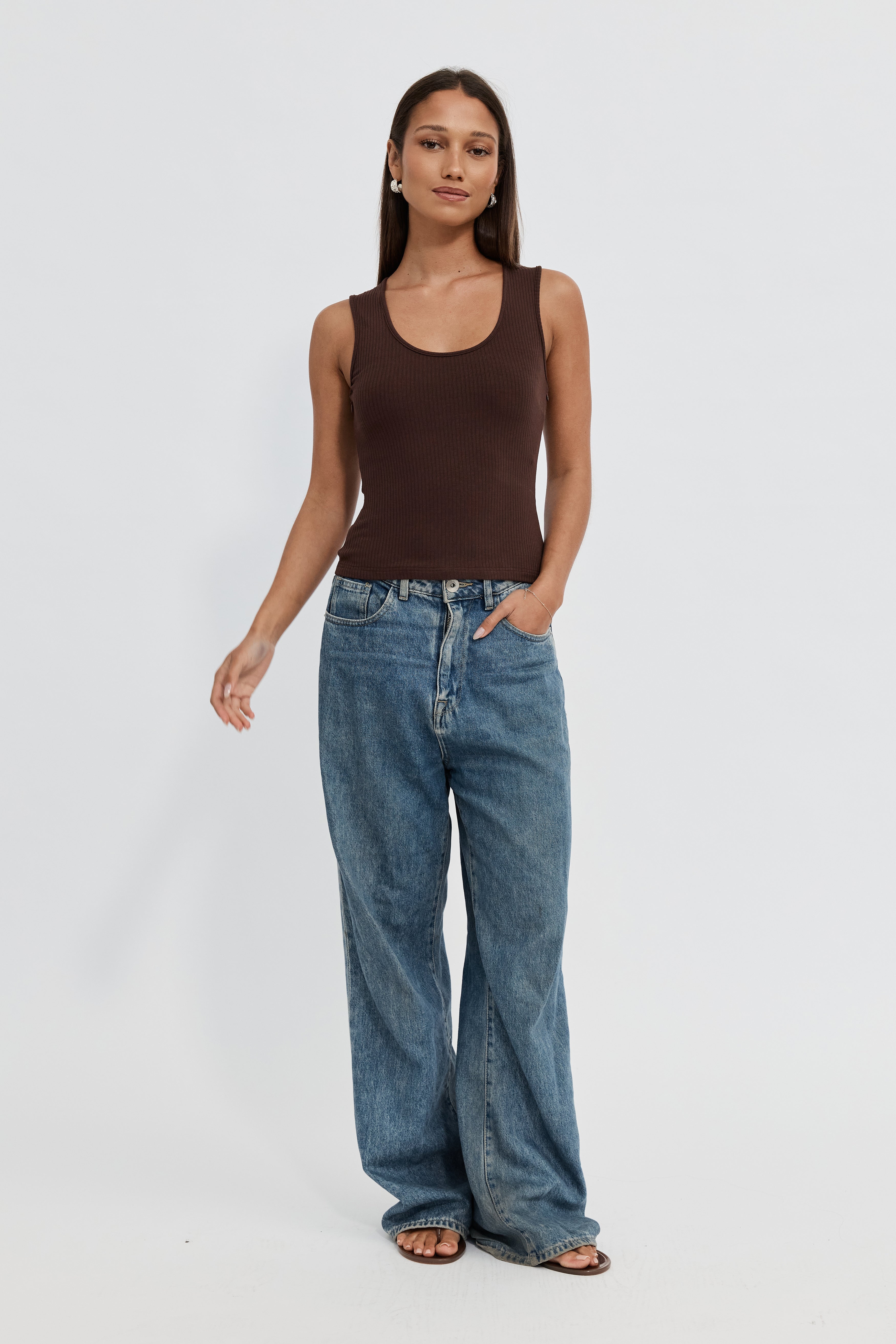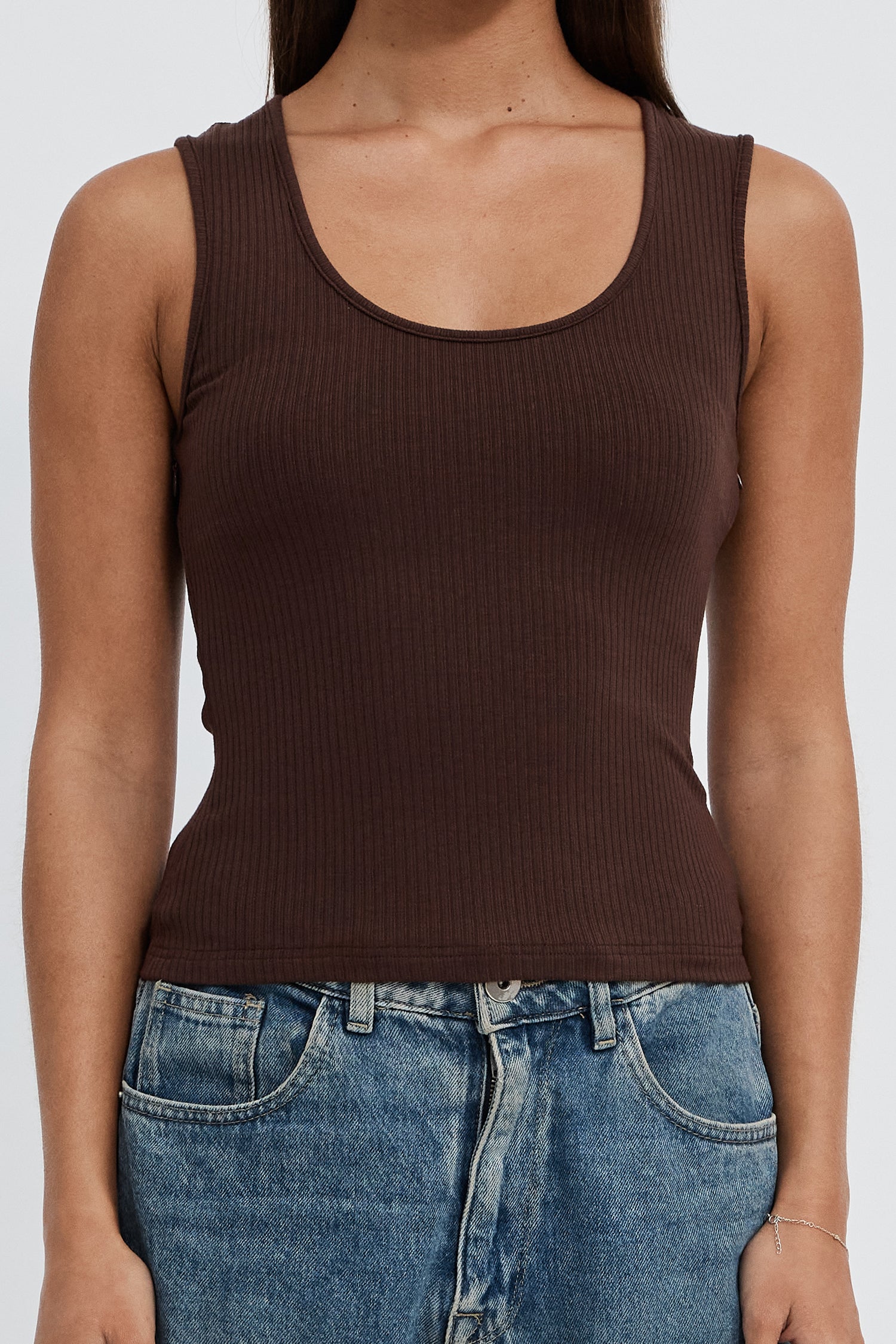 Esta Ribbed Scoop Neck Tank - Chocolate