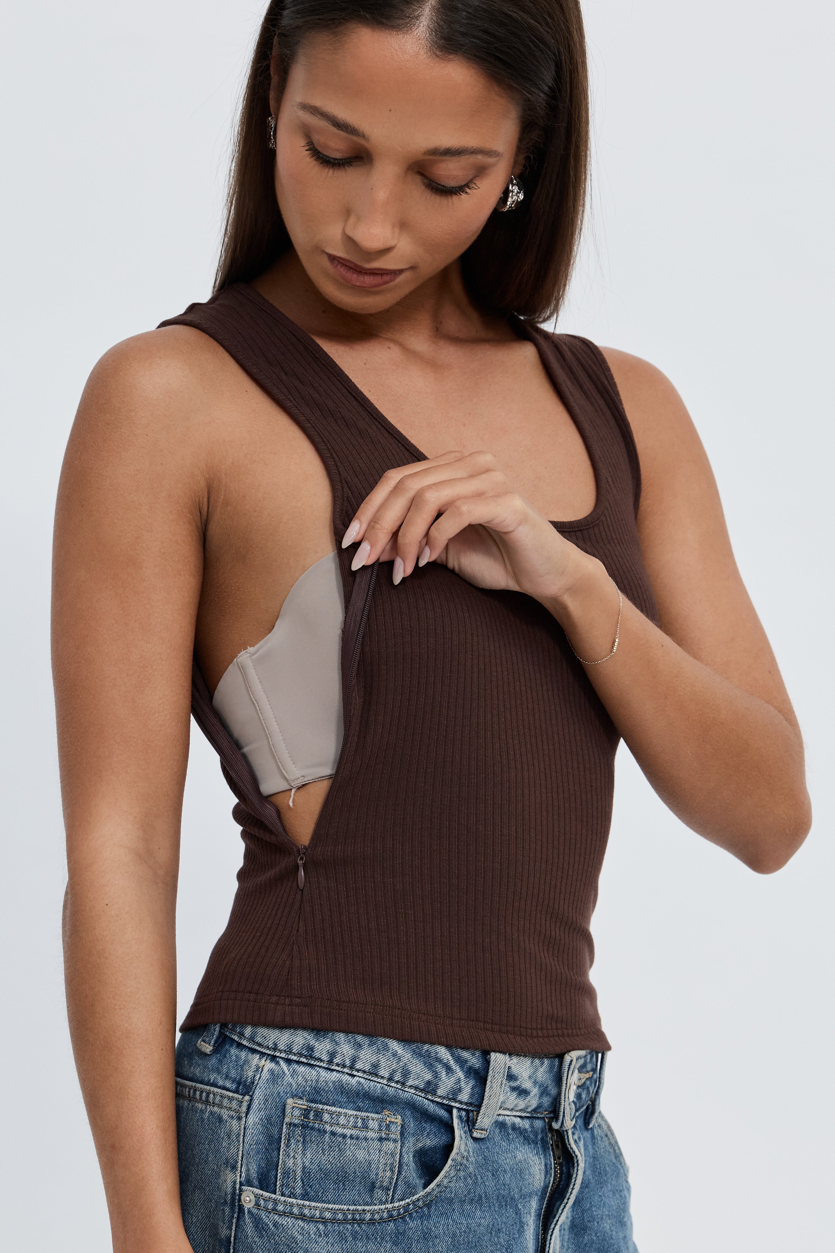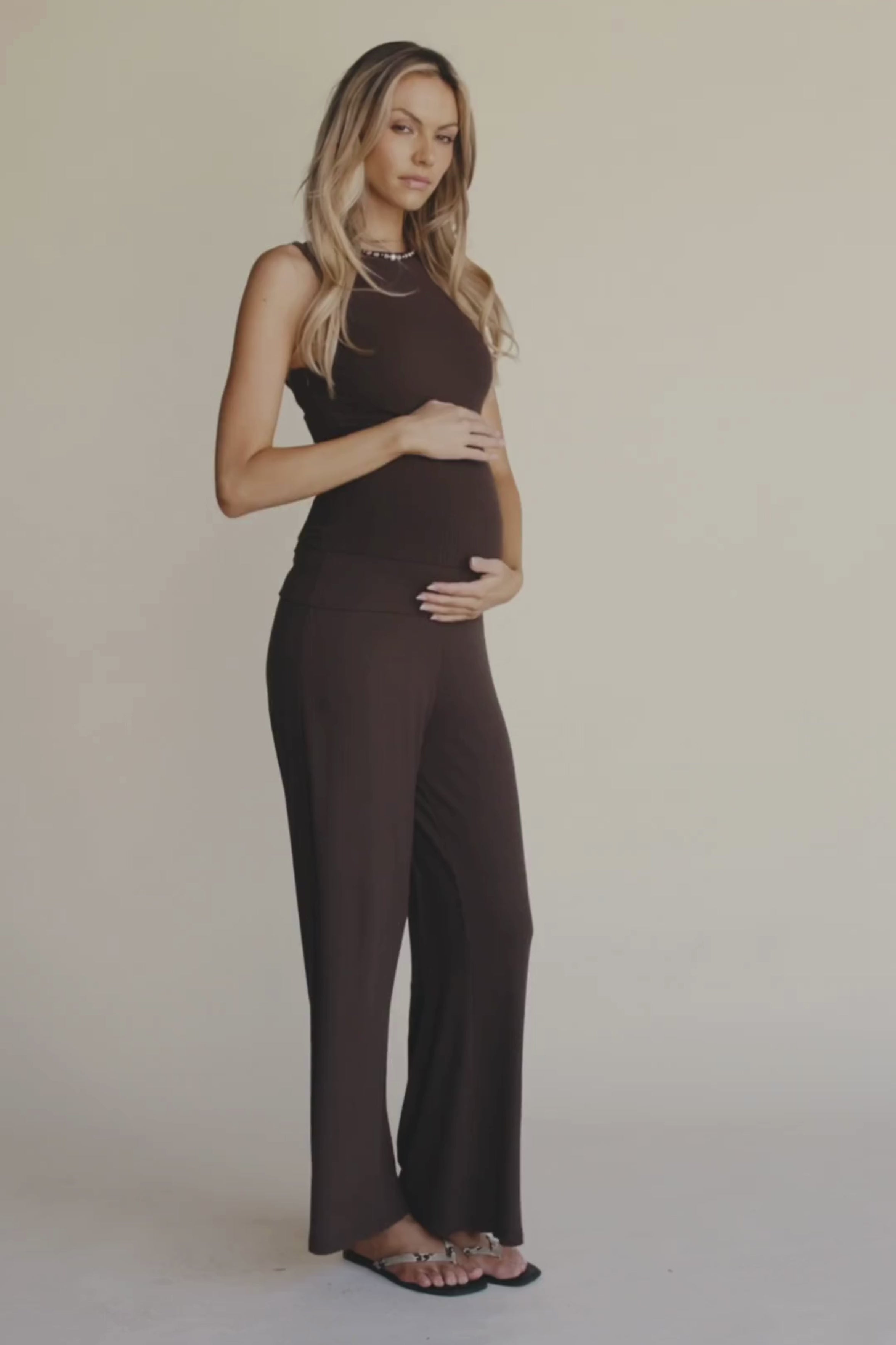 The Esta Reversible Ribbed Scoop Neck Tank in Chocolate is your new go-to staple. Designed with the intention to support you through pregnancy, postpartum, breastfeeding, and everyday life.