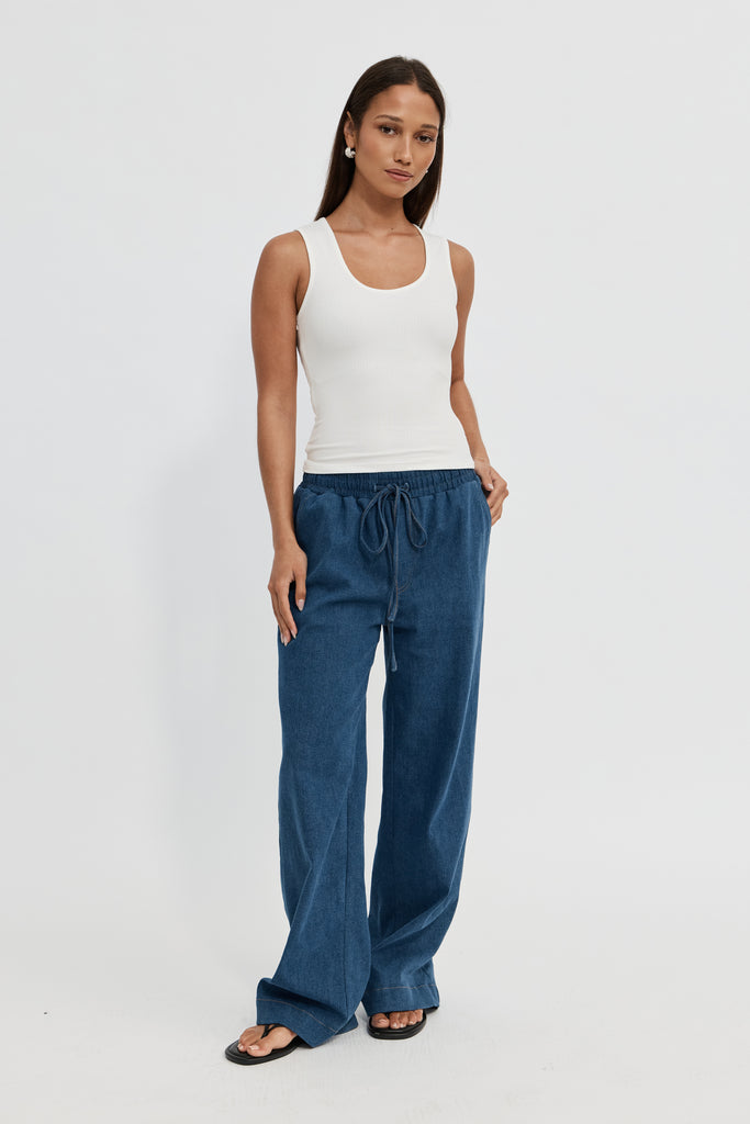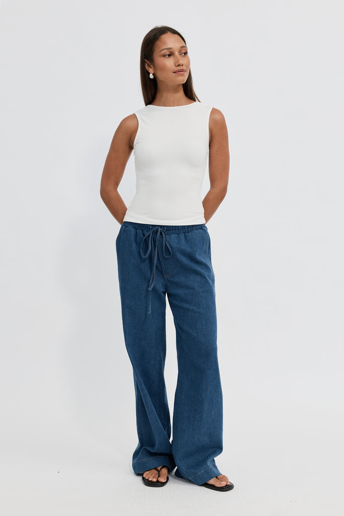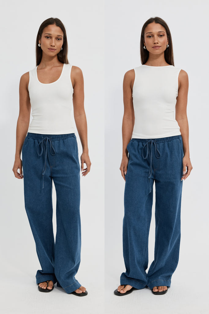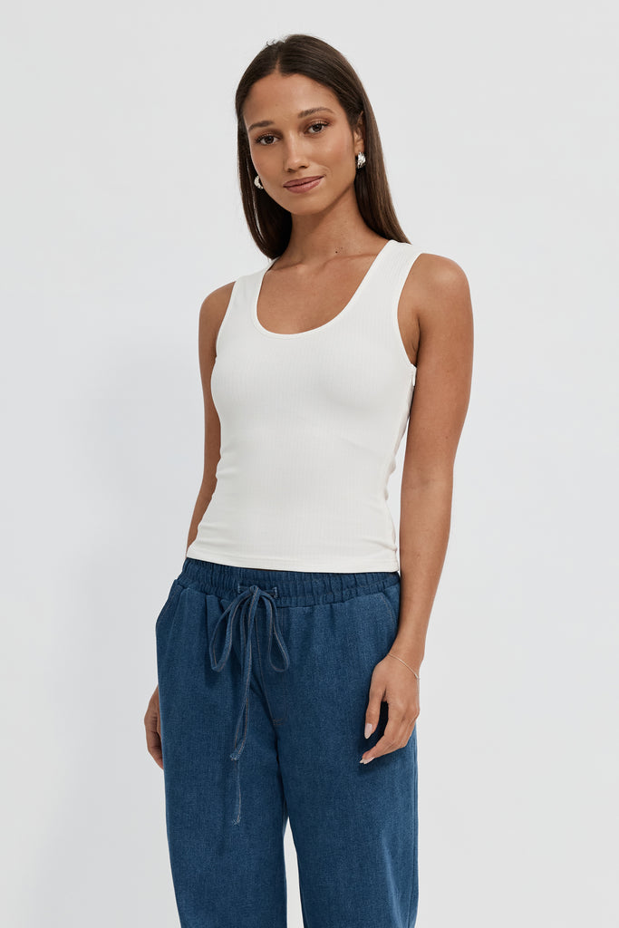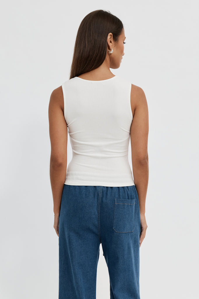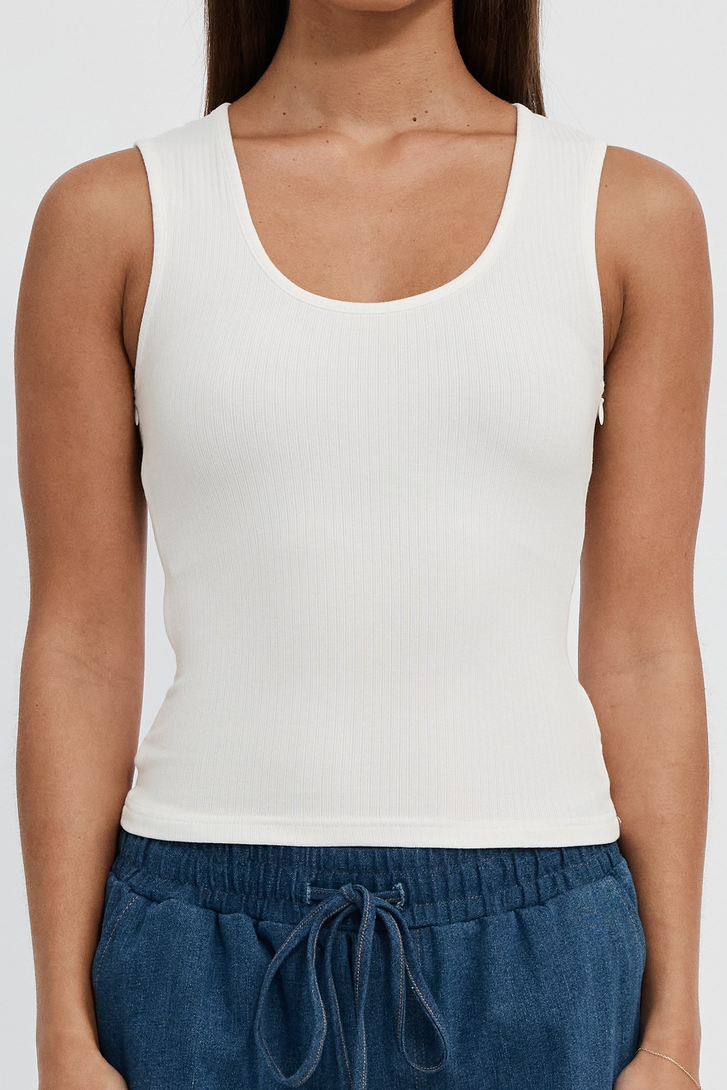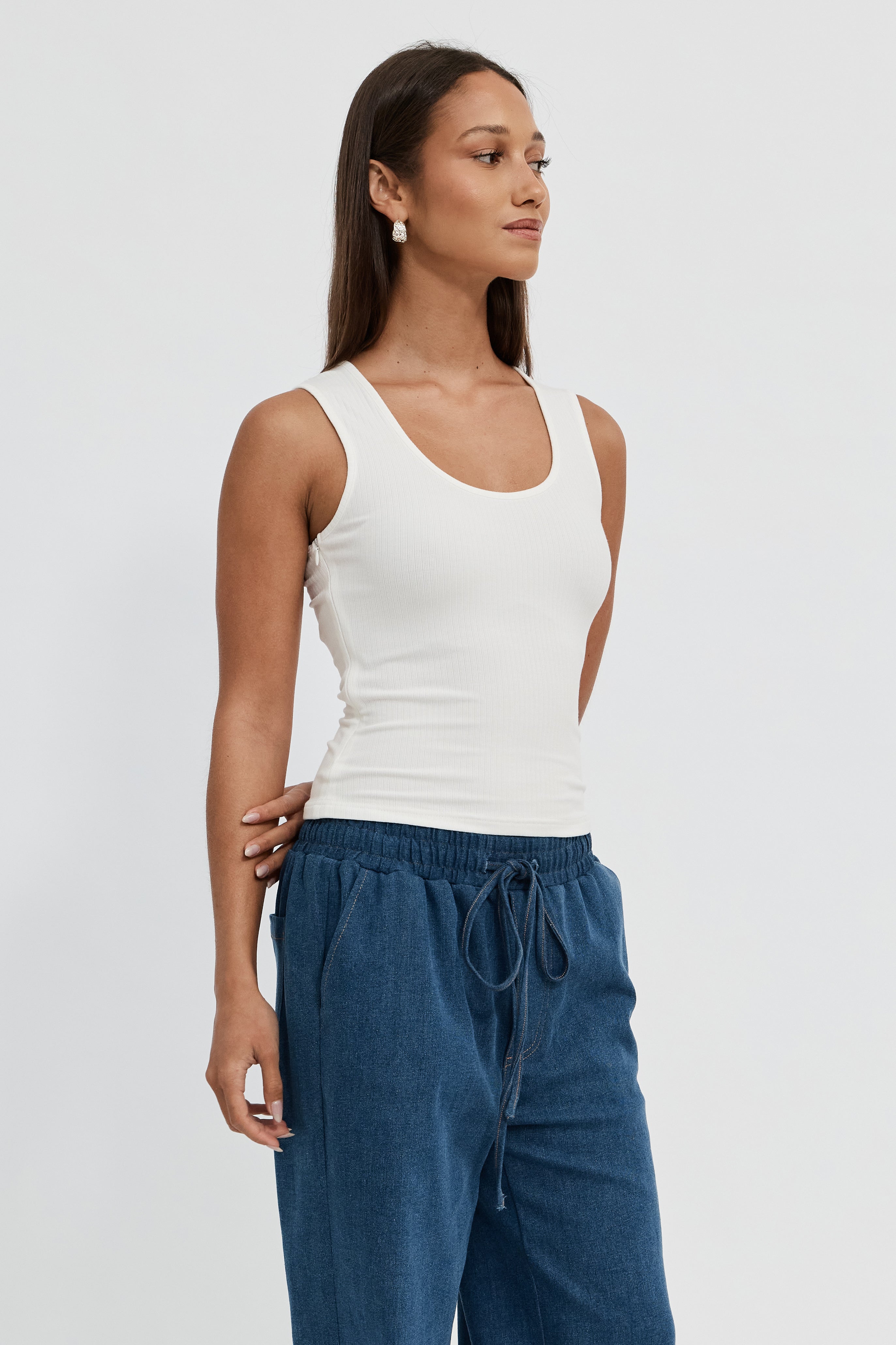 Esta Reversible Ribbed Scoop Neck Tank - White