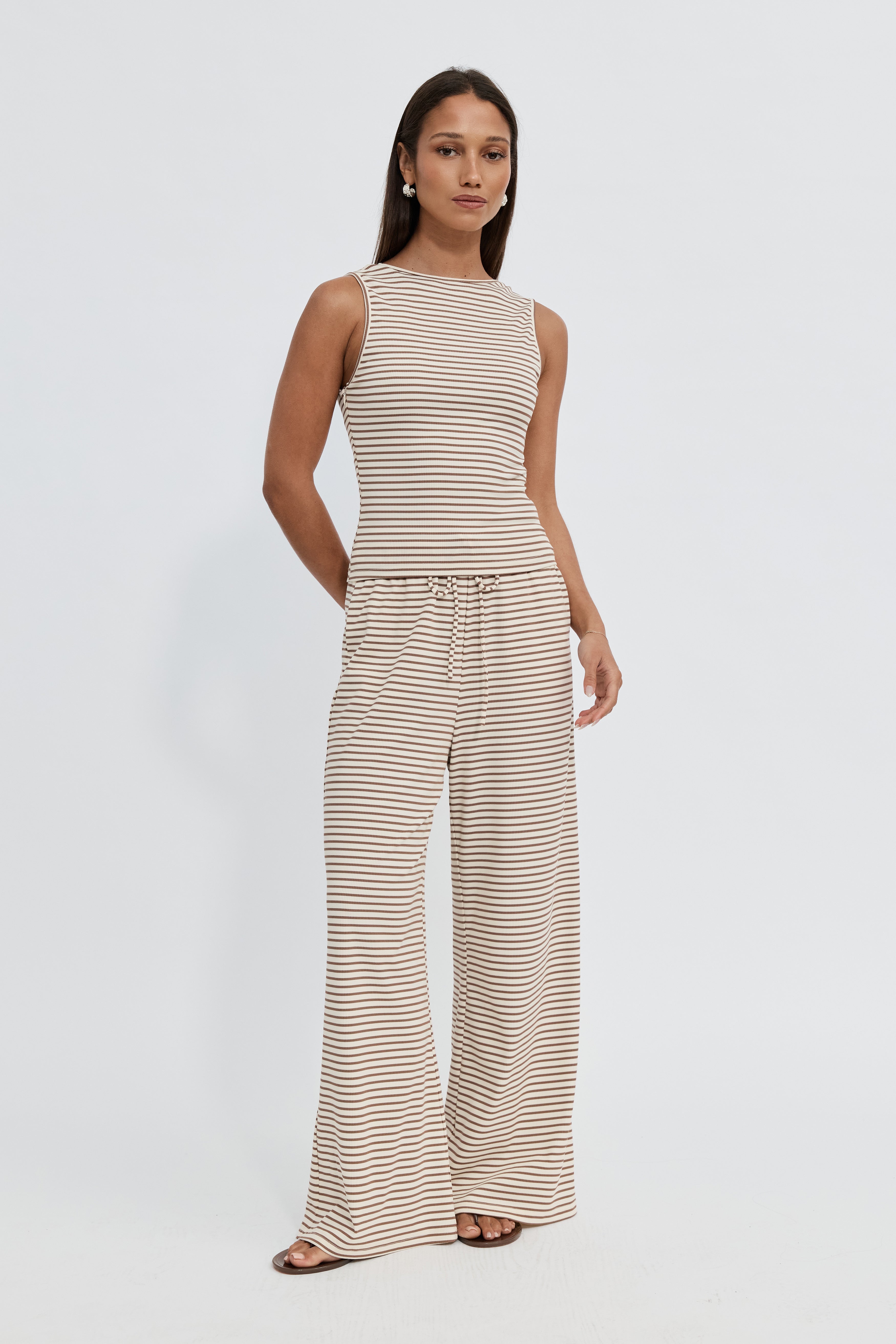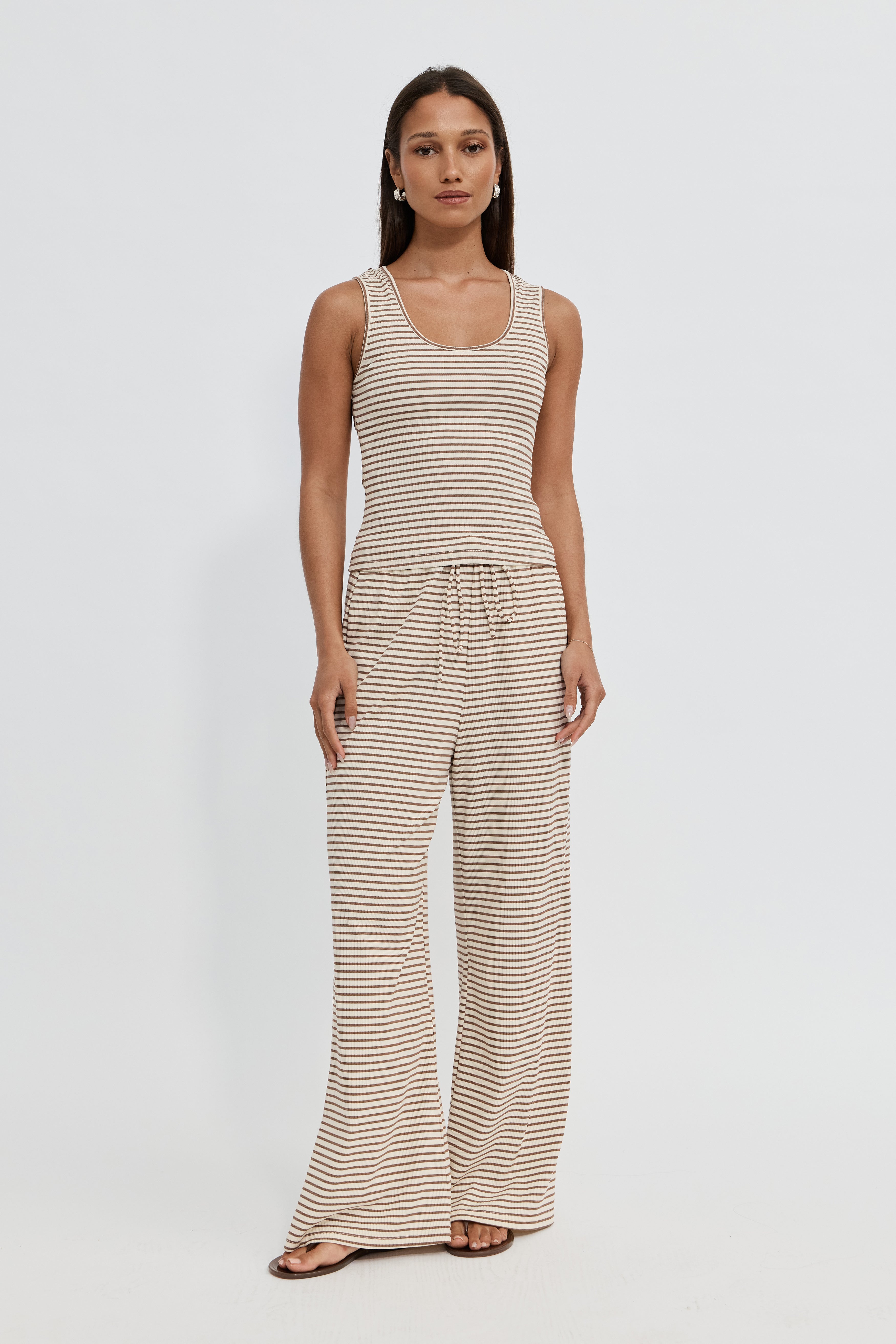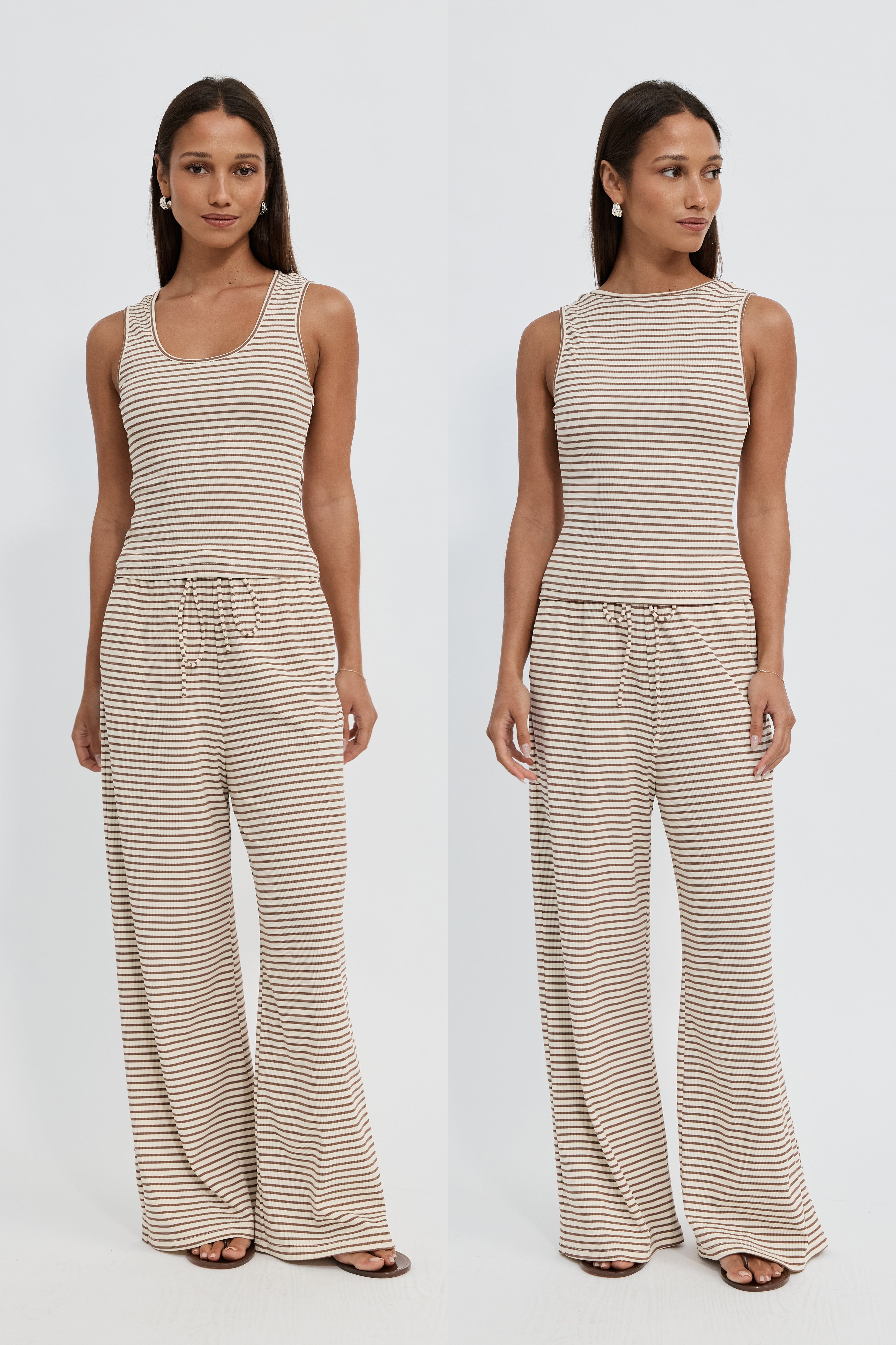 Ivy Reversible Stripe Scoop Neck Tank - Cream / Tan