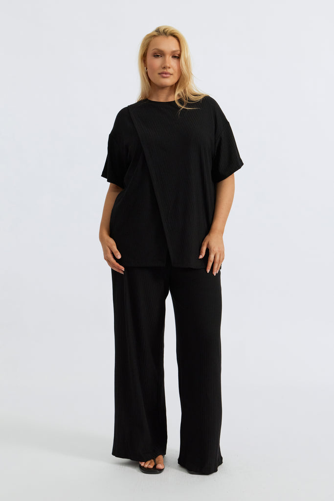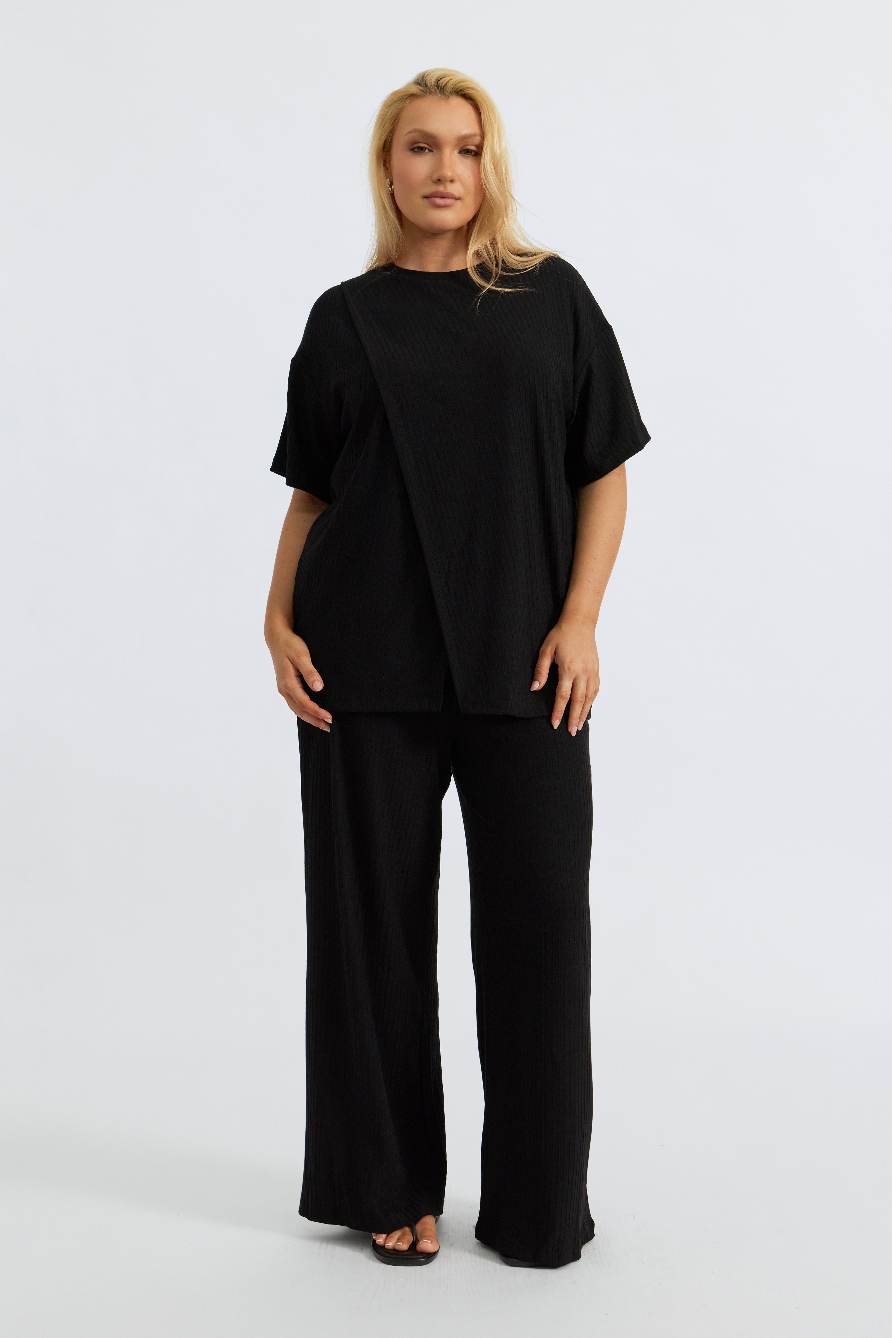 Elevate your ensemble by pairing these wide-leg pants with the matching Ivy Wrap Longline Tee for a coordinated look that effortlessly balances comfort and fashion.