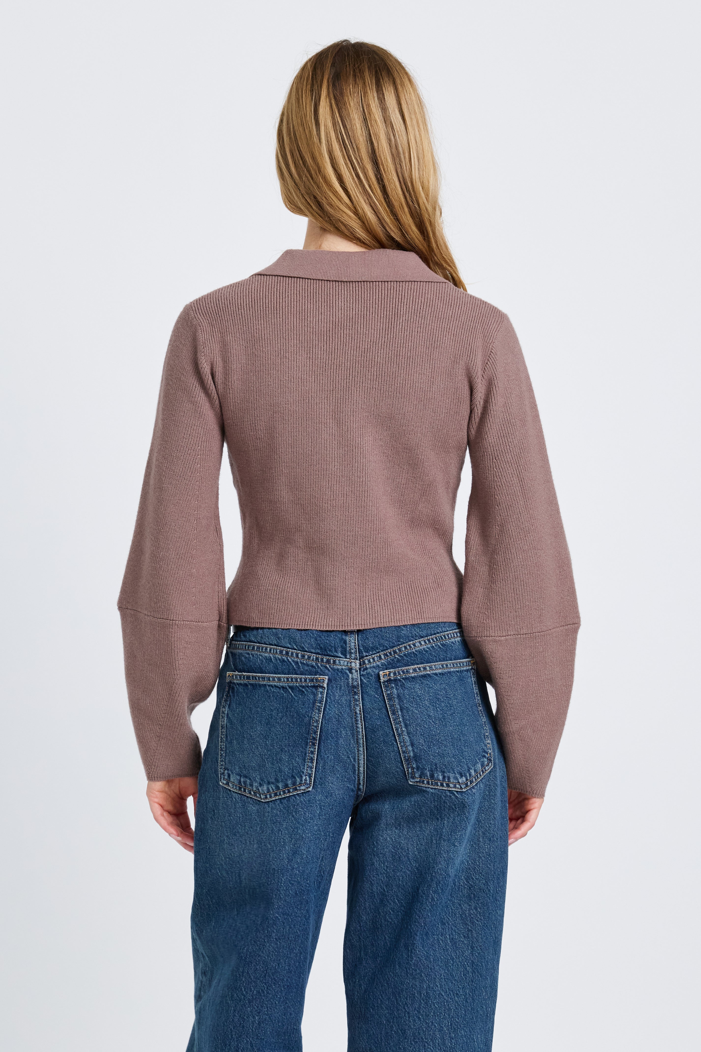 Elevate the everyday with the Astra Balloon-Sleeve Zip-Front Knit Top in Taupe designed for motherhood. Astra features a zip down front for easy on-the-go breastfeeding, whilst shaping down the body for a flattering look and to accommodate your growing bump.