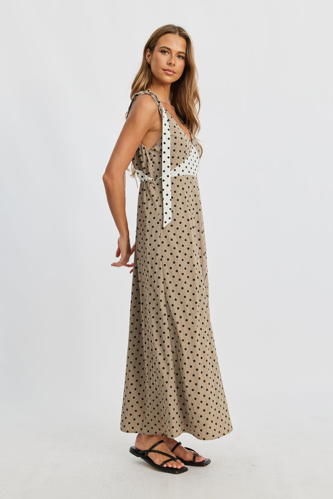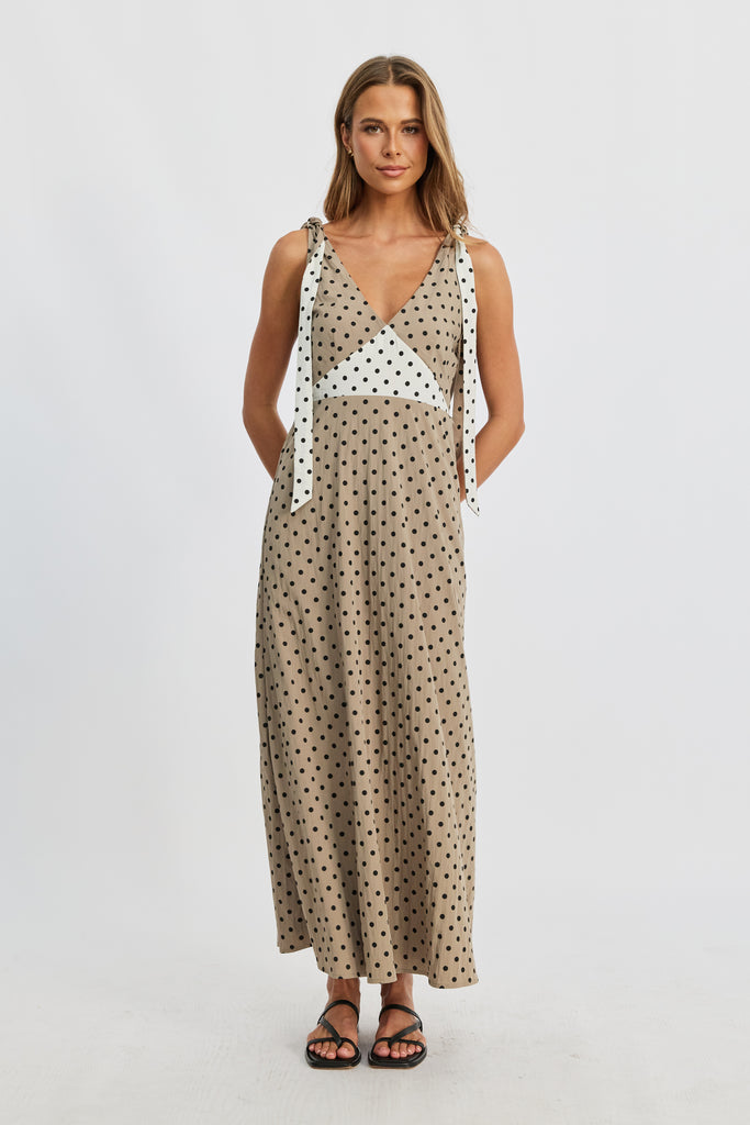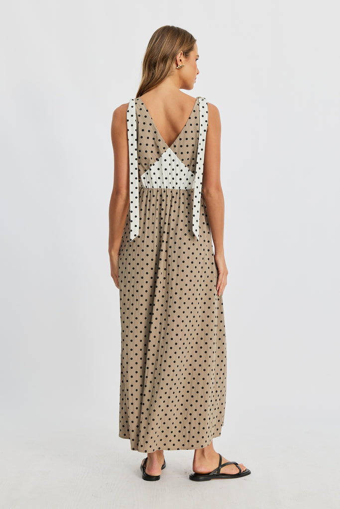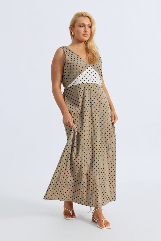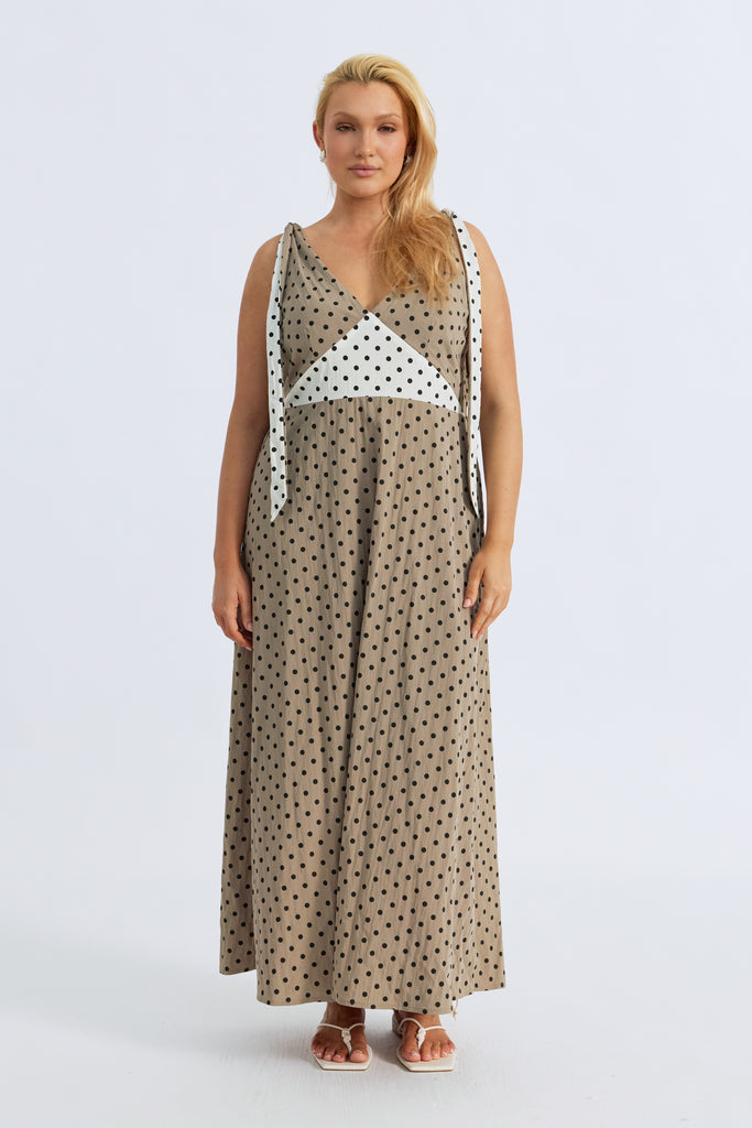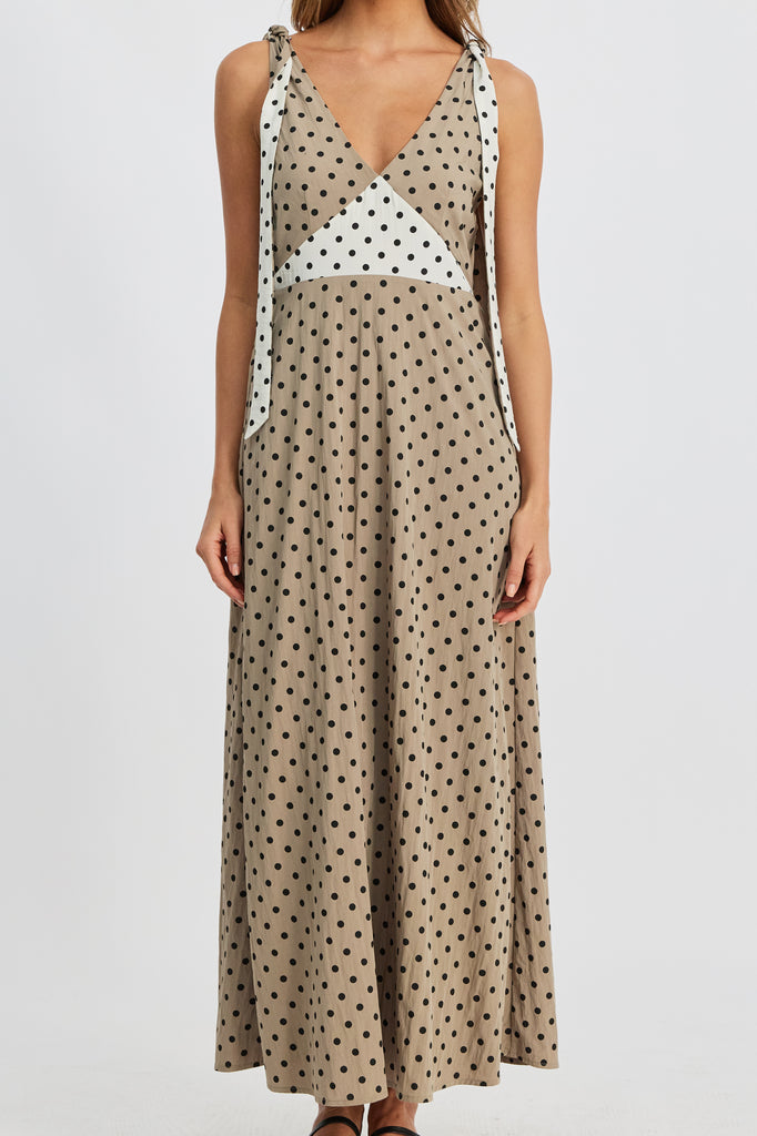 Benni Polka-Dot Babydoll Dress - Taupe / Cream