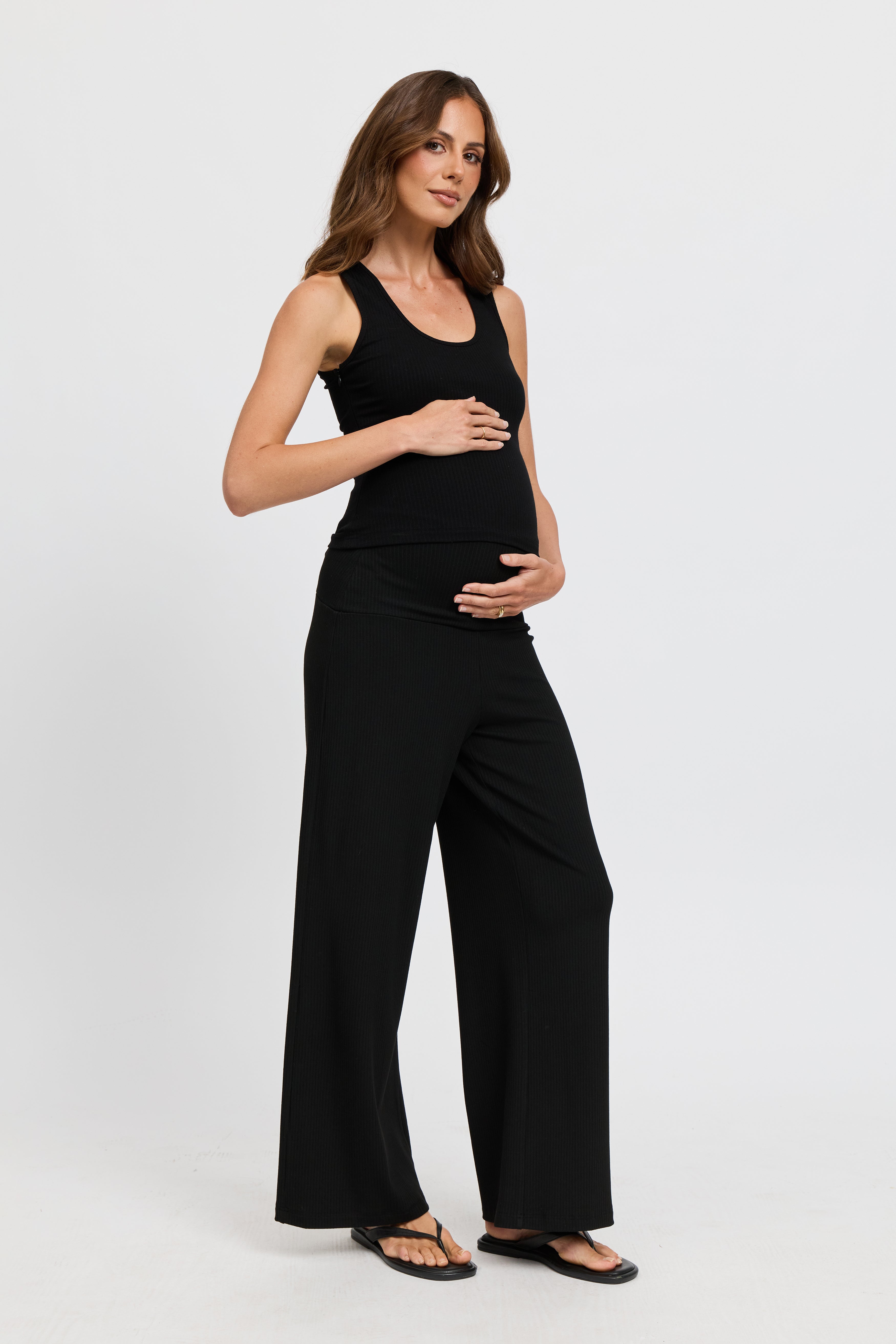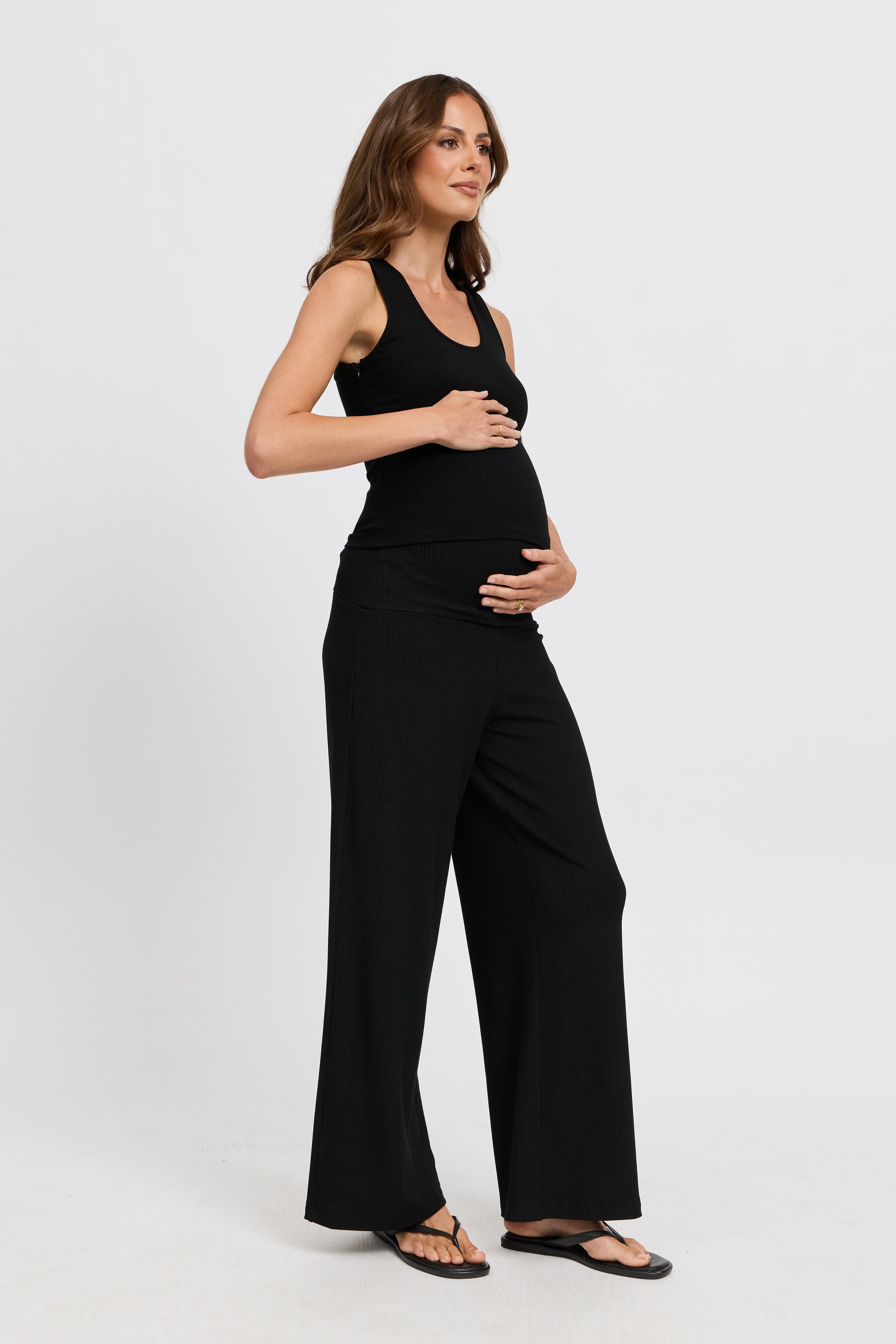 Introducing the Esta Ribbed Foldover Waist Pant in Black is your new go-to staple. Your ultimate blend of style and comfort. Designed with modern mothers in mind, these pants are perfect for taking you from bump to beyond.