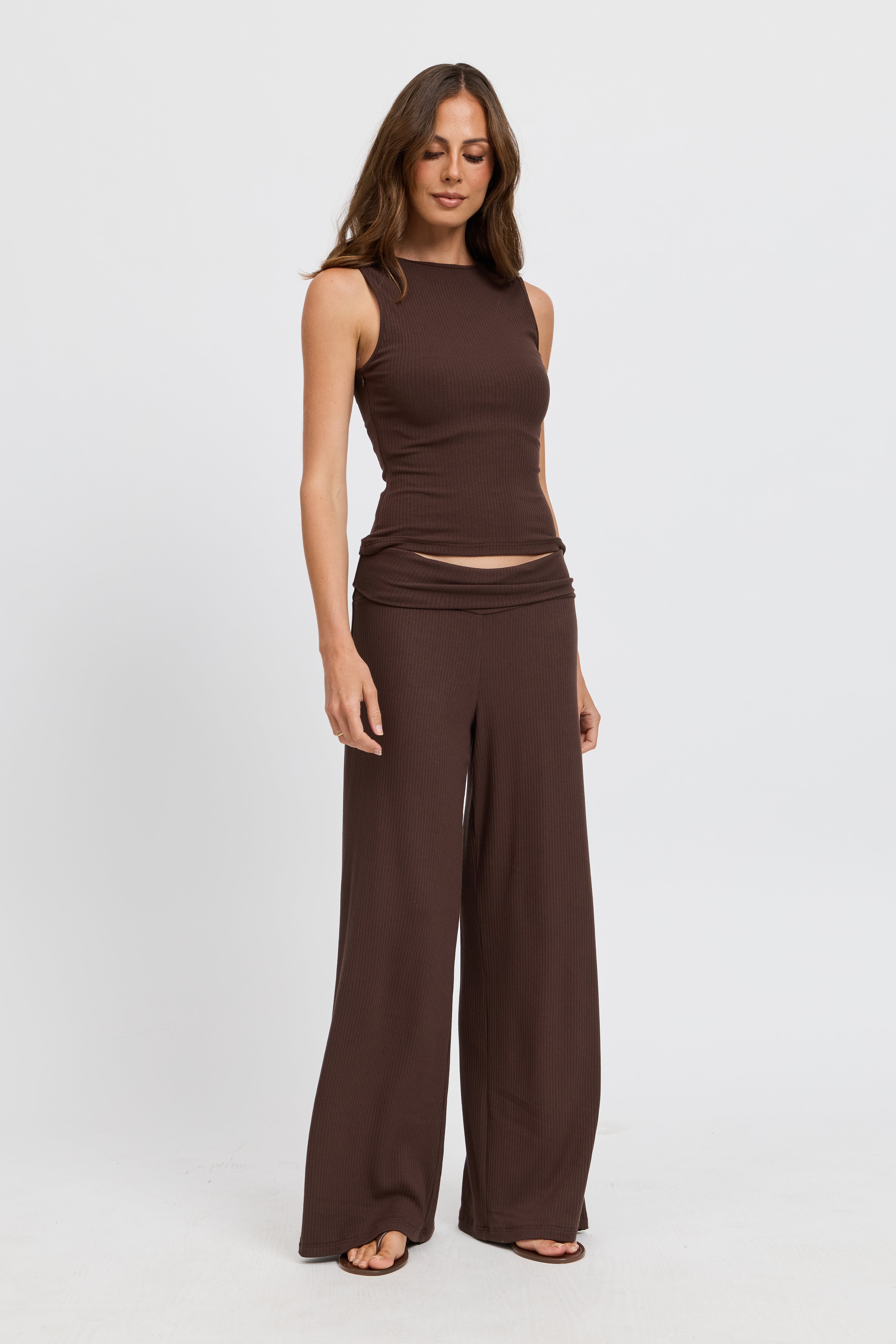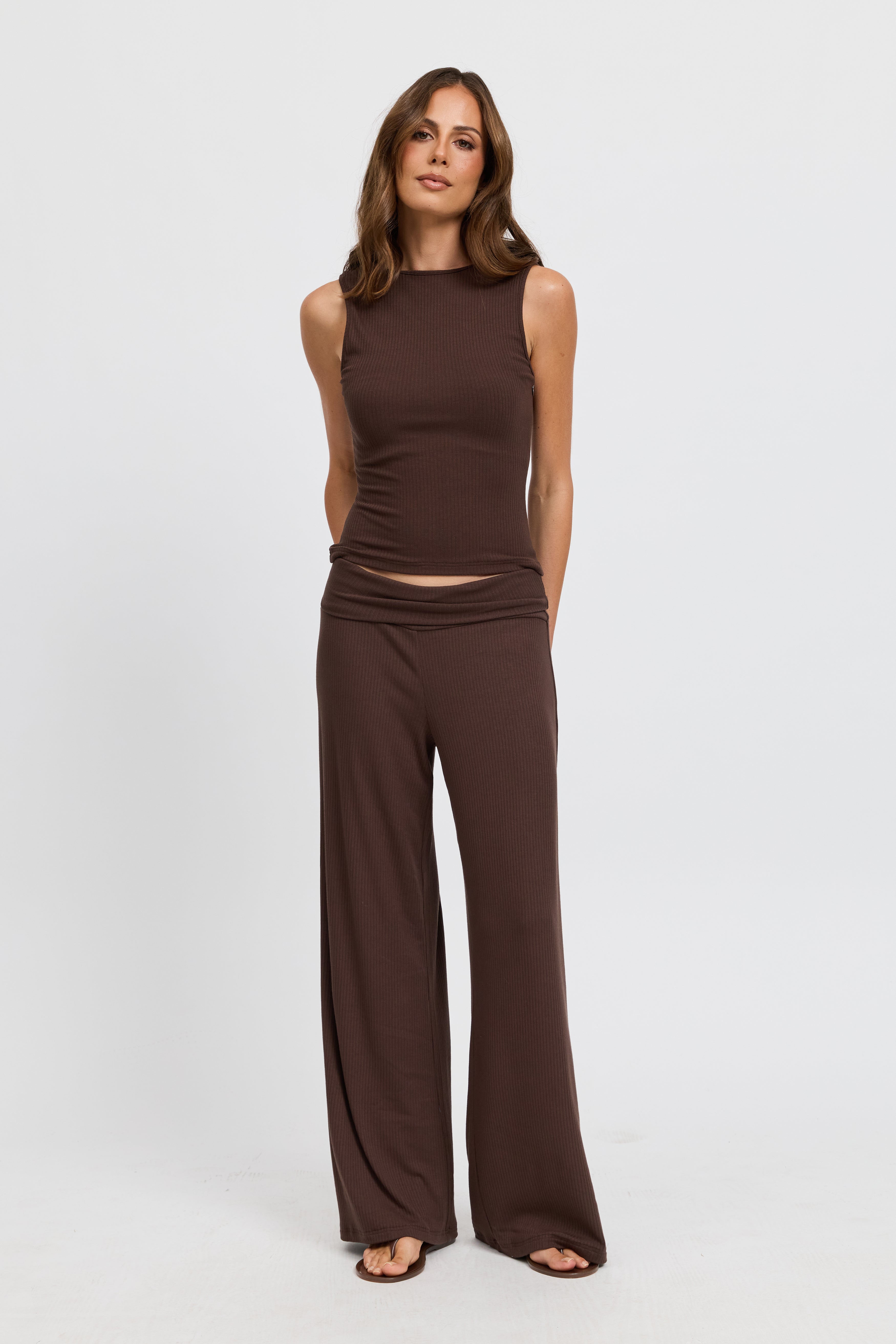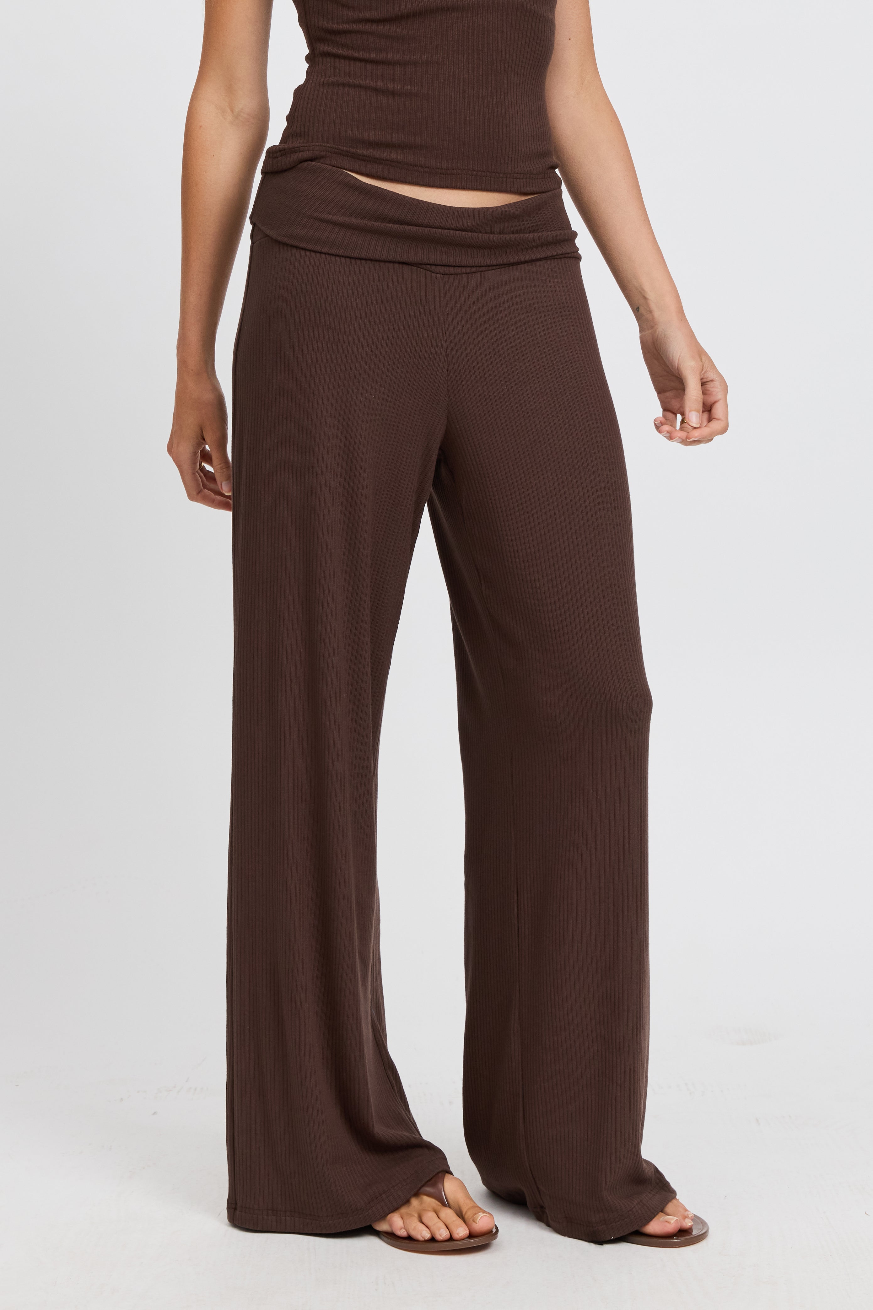 Esta Ribbed Foldover Waist Pant - Chocolate