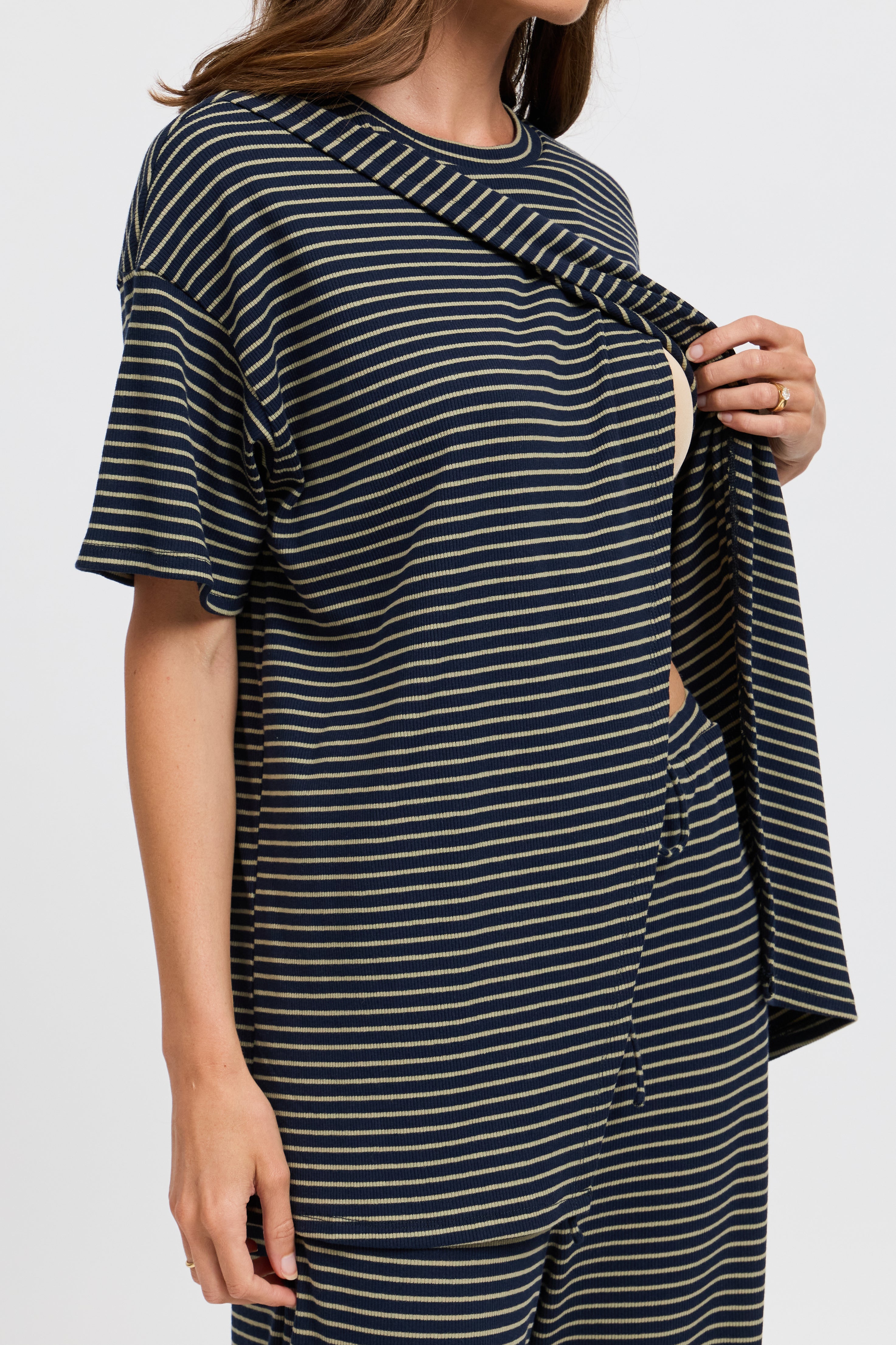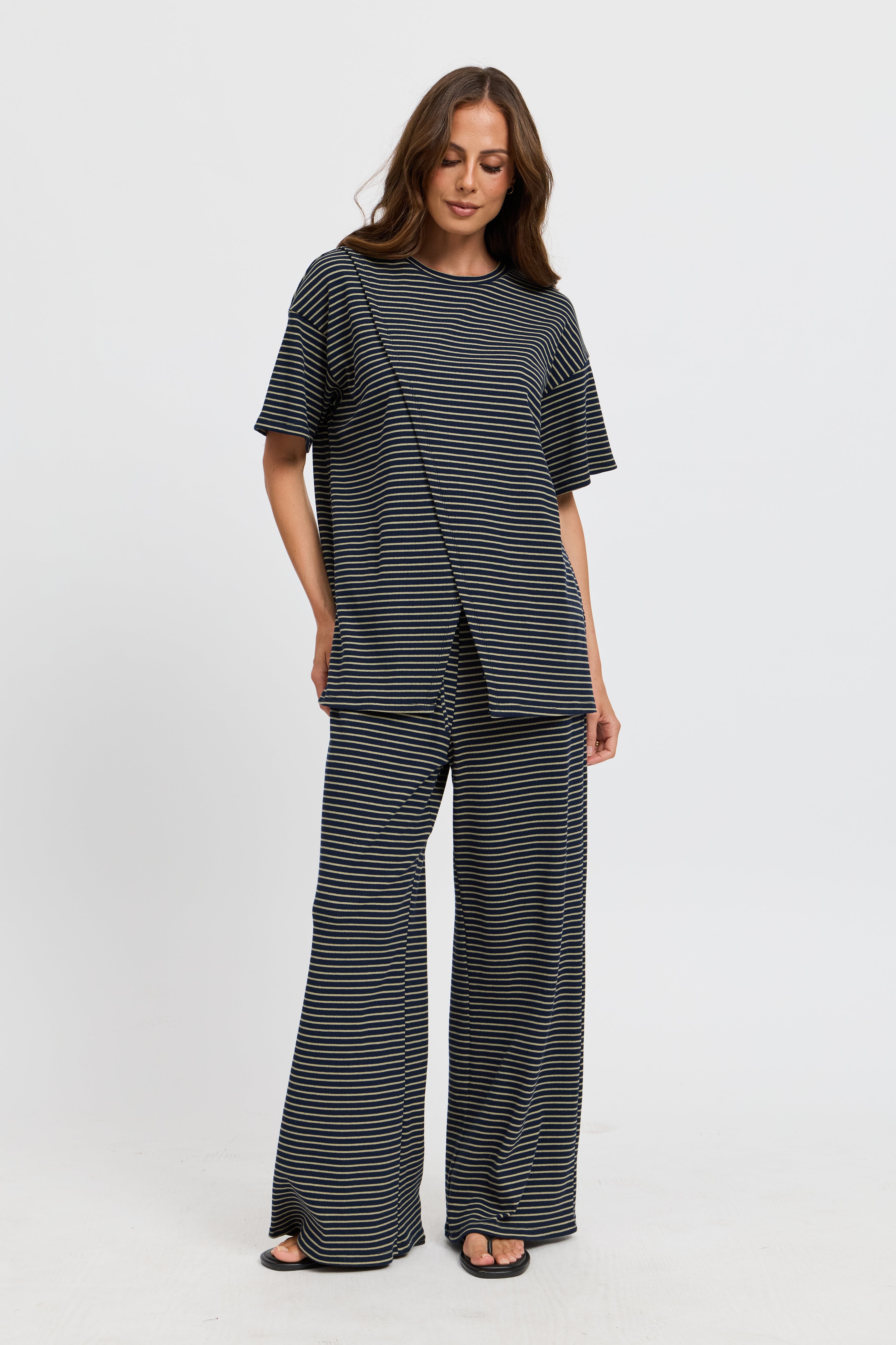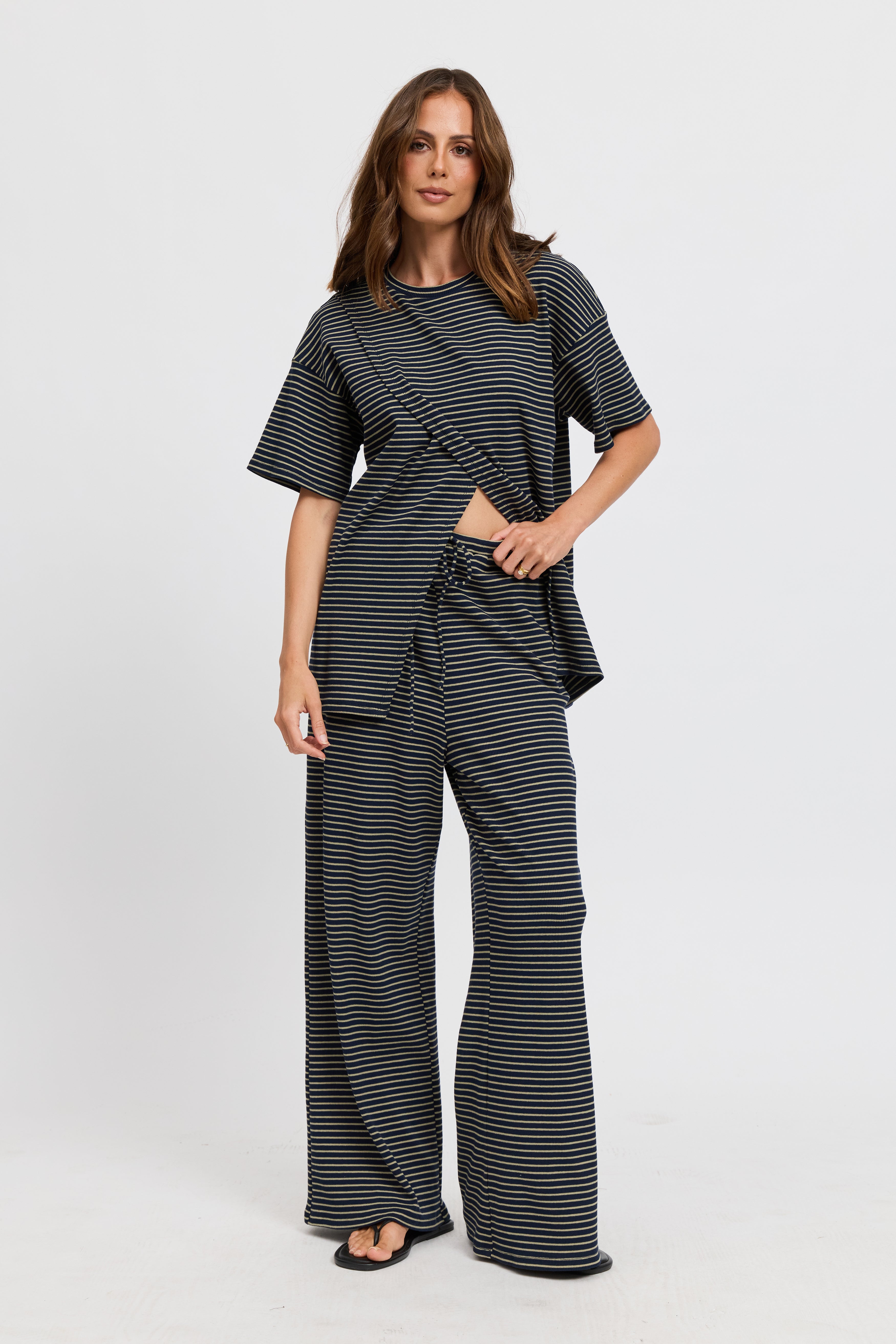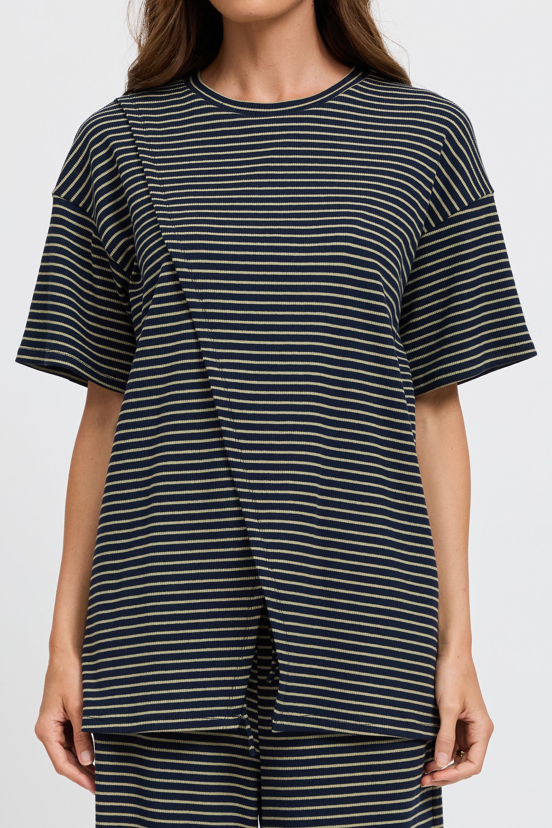 Ivy Stripe Longline Wrap Tee - Navy / Khaki