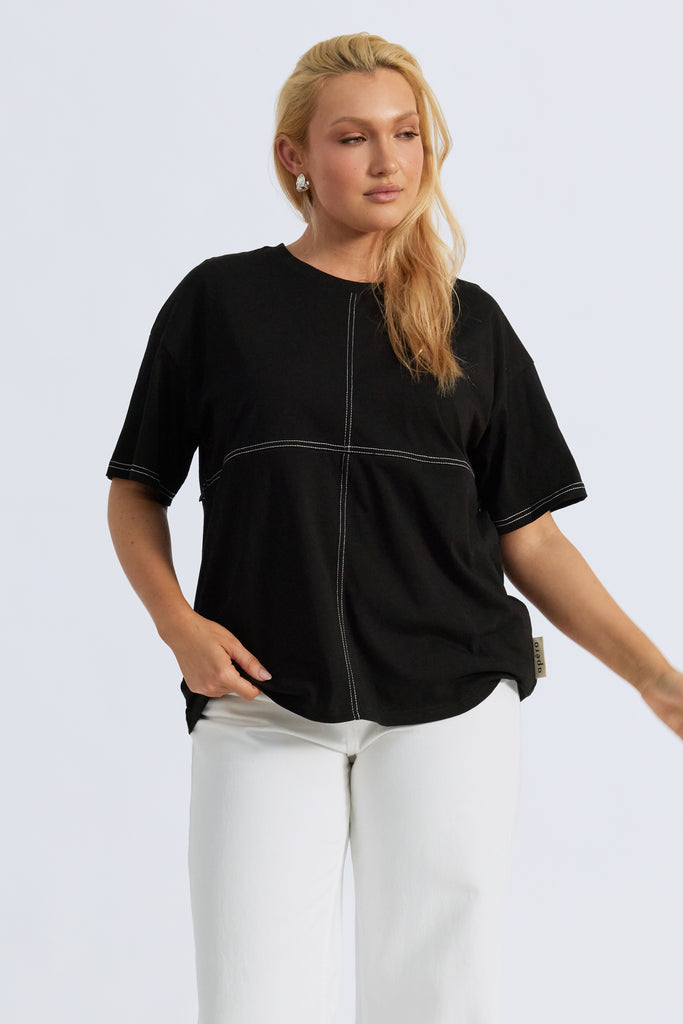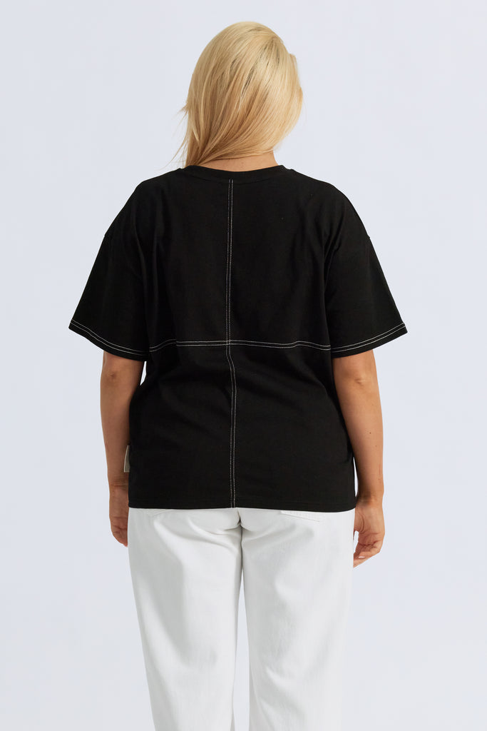 The Miro Contrast Panel Tee in black is the ultimate everyday essential. Made from soft, breathable cotton jersey, it’s designed for effortless, elevated style. The subtle contrast panel topstitching adds a touch of distinction, making it a versatile piece for pregnancy and beyond.