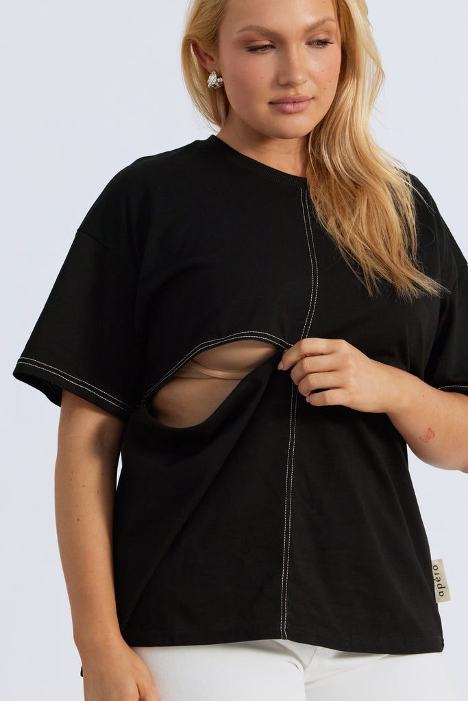 With practicality at its core, this tee includes a discreet two-way zipper under the bust for easy, hassle-free breastfeeding access.