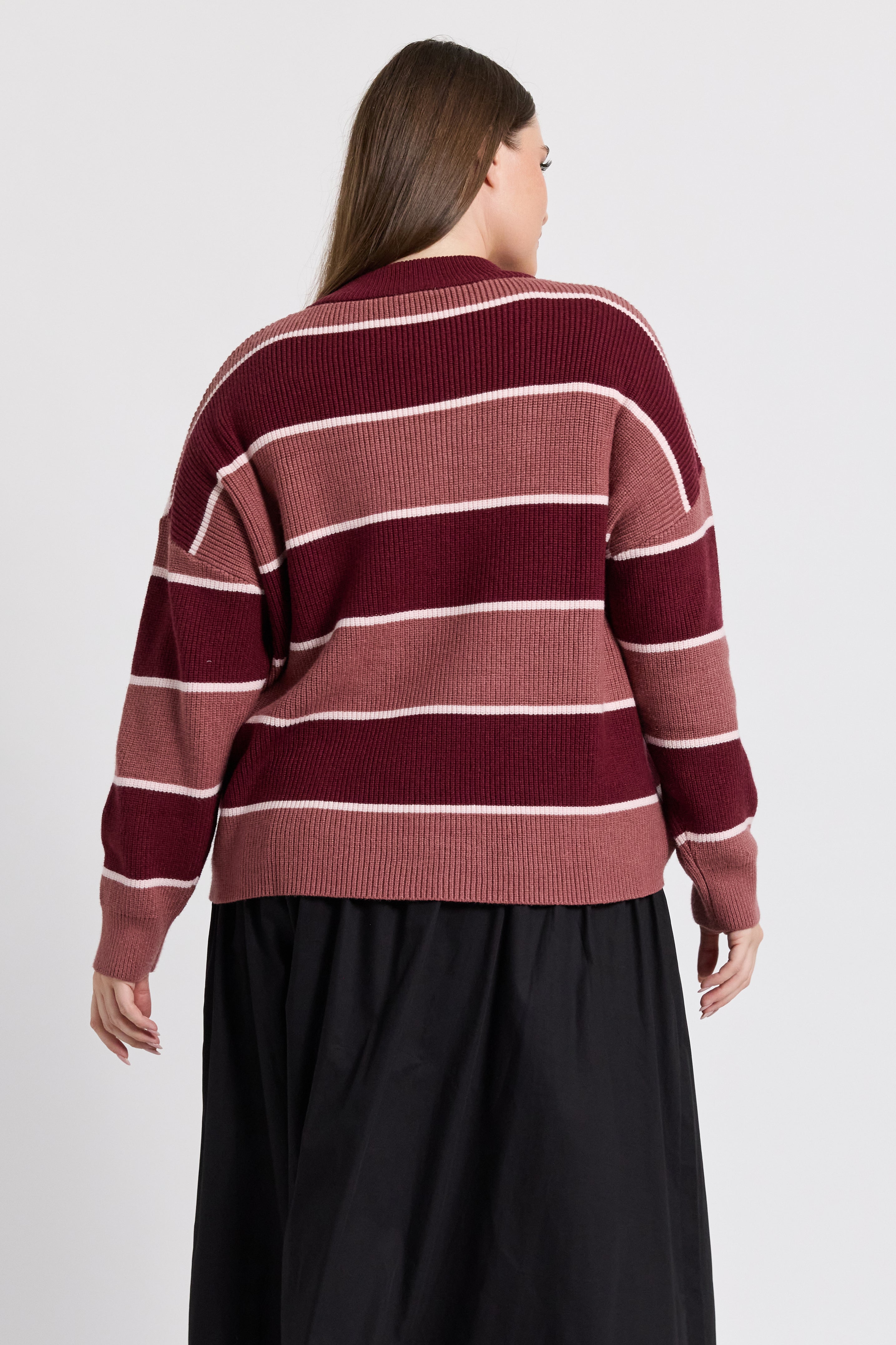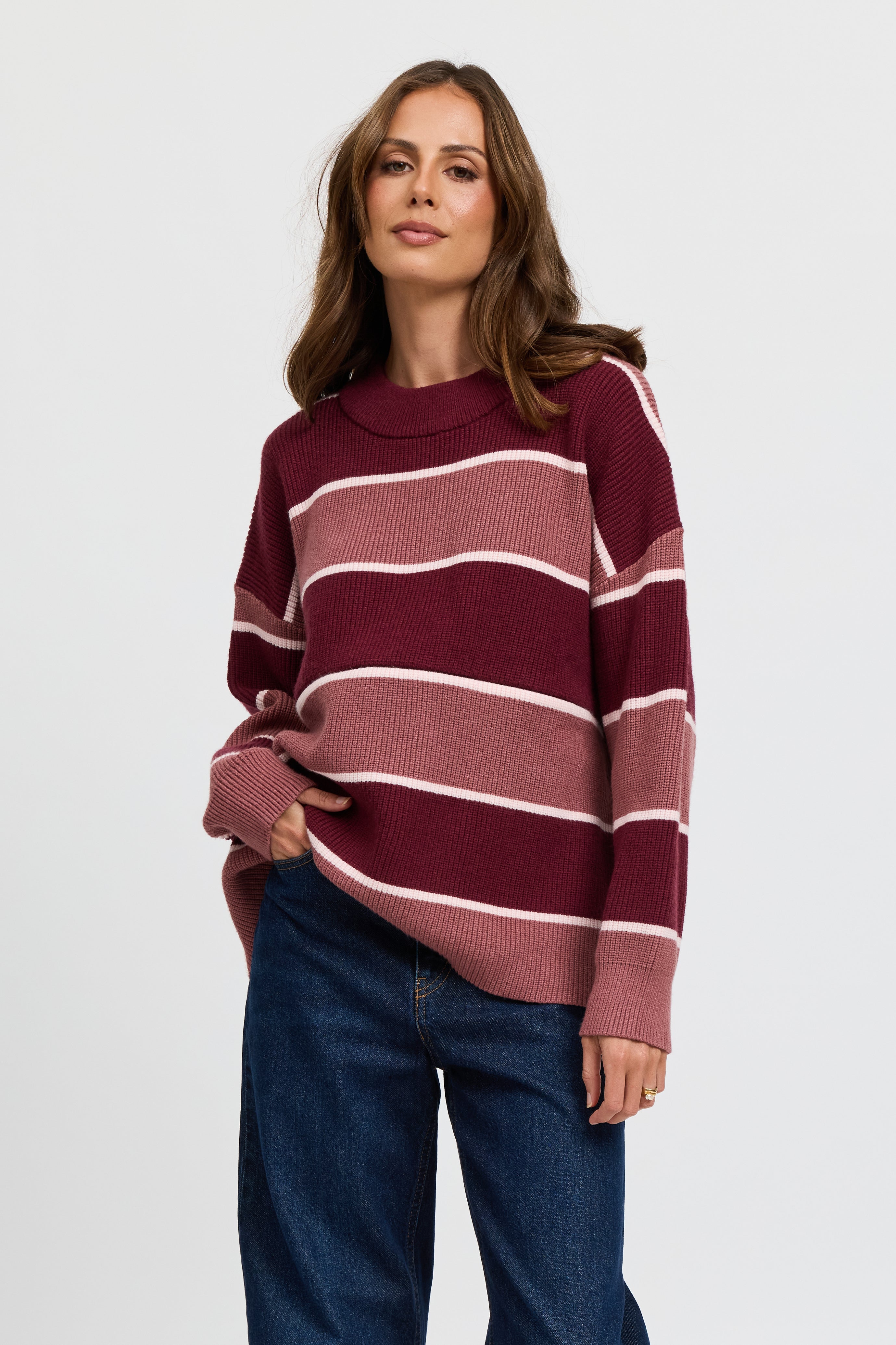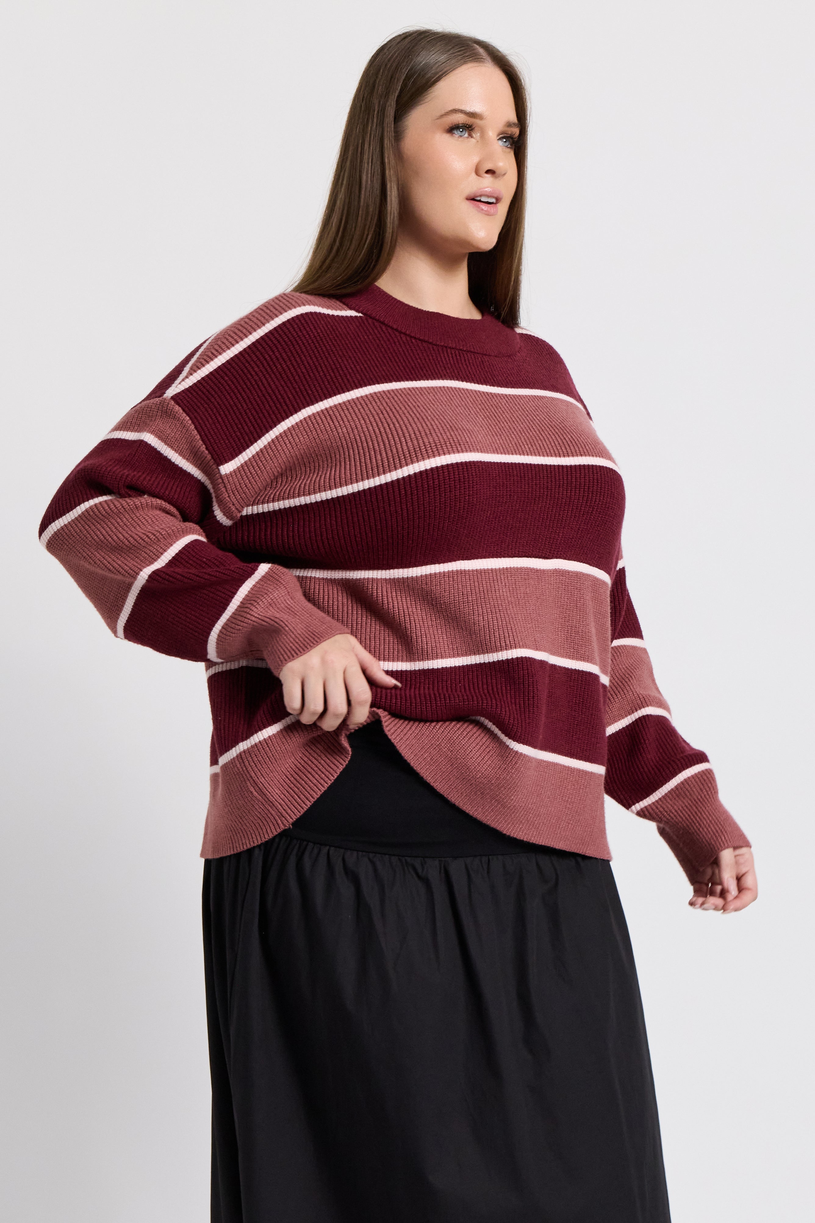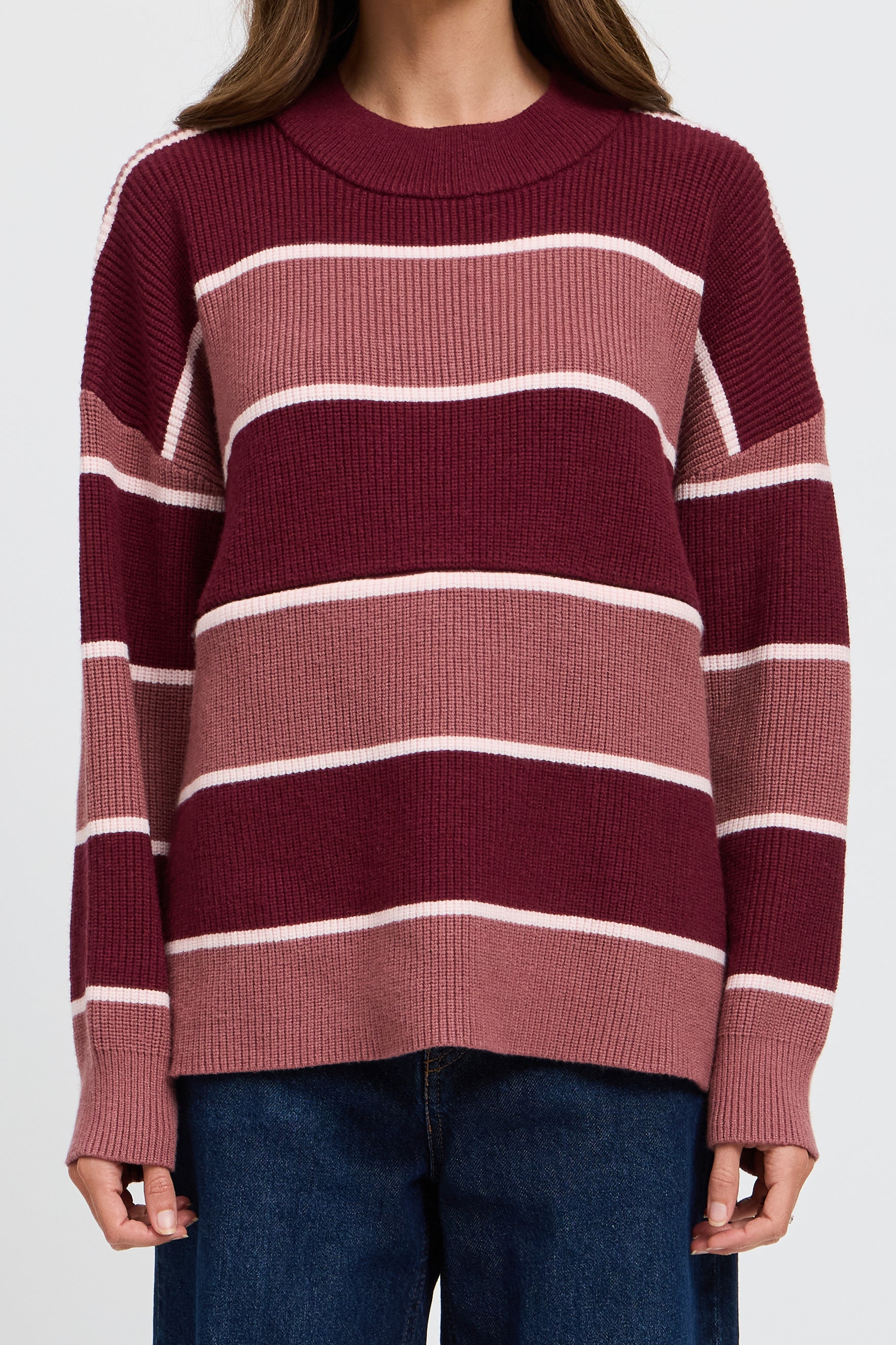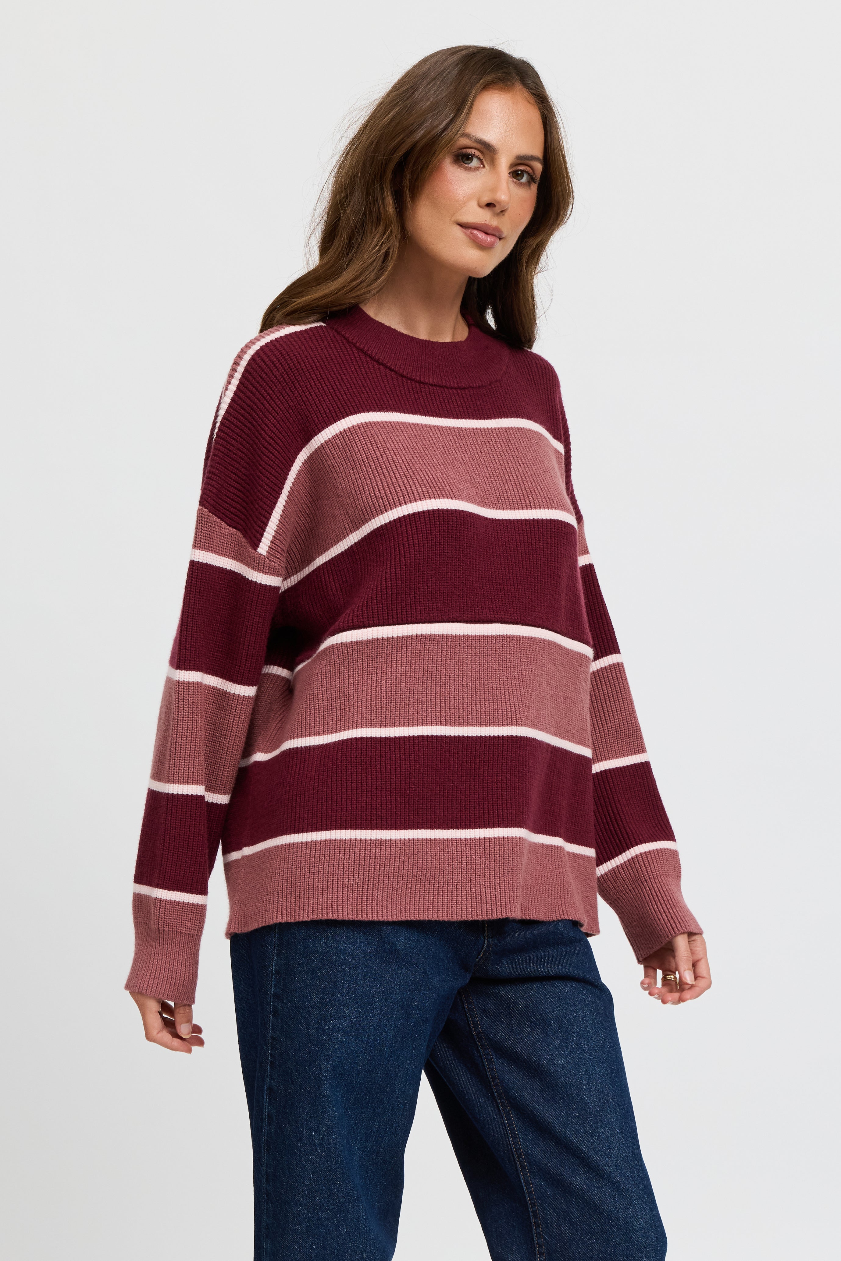 Sasha Stripe Knit Jumper - Burgundy / Strawberry