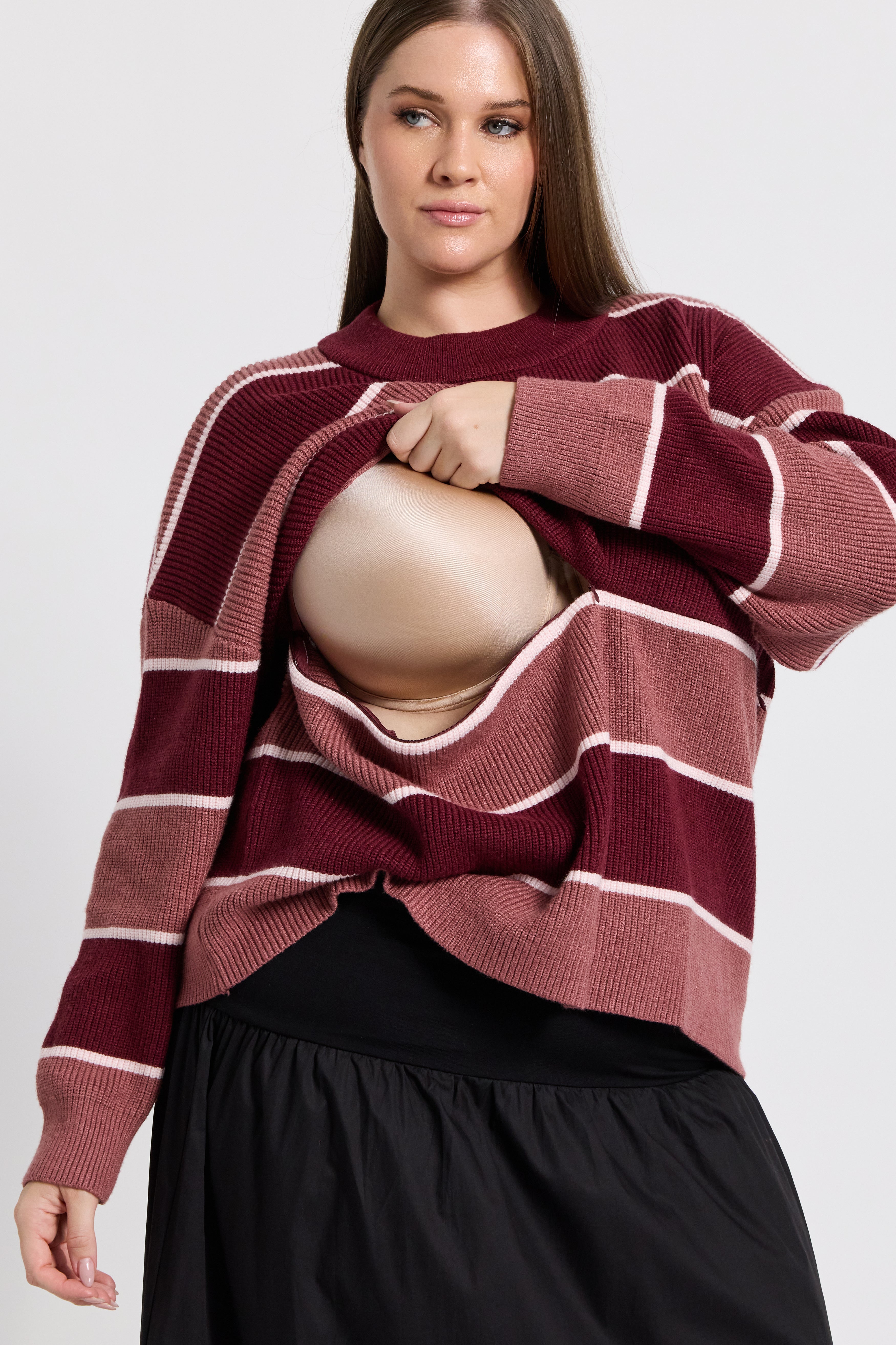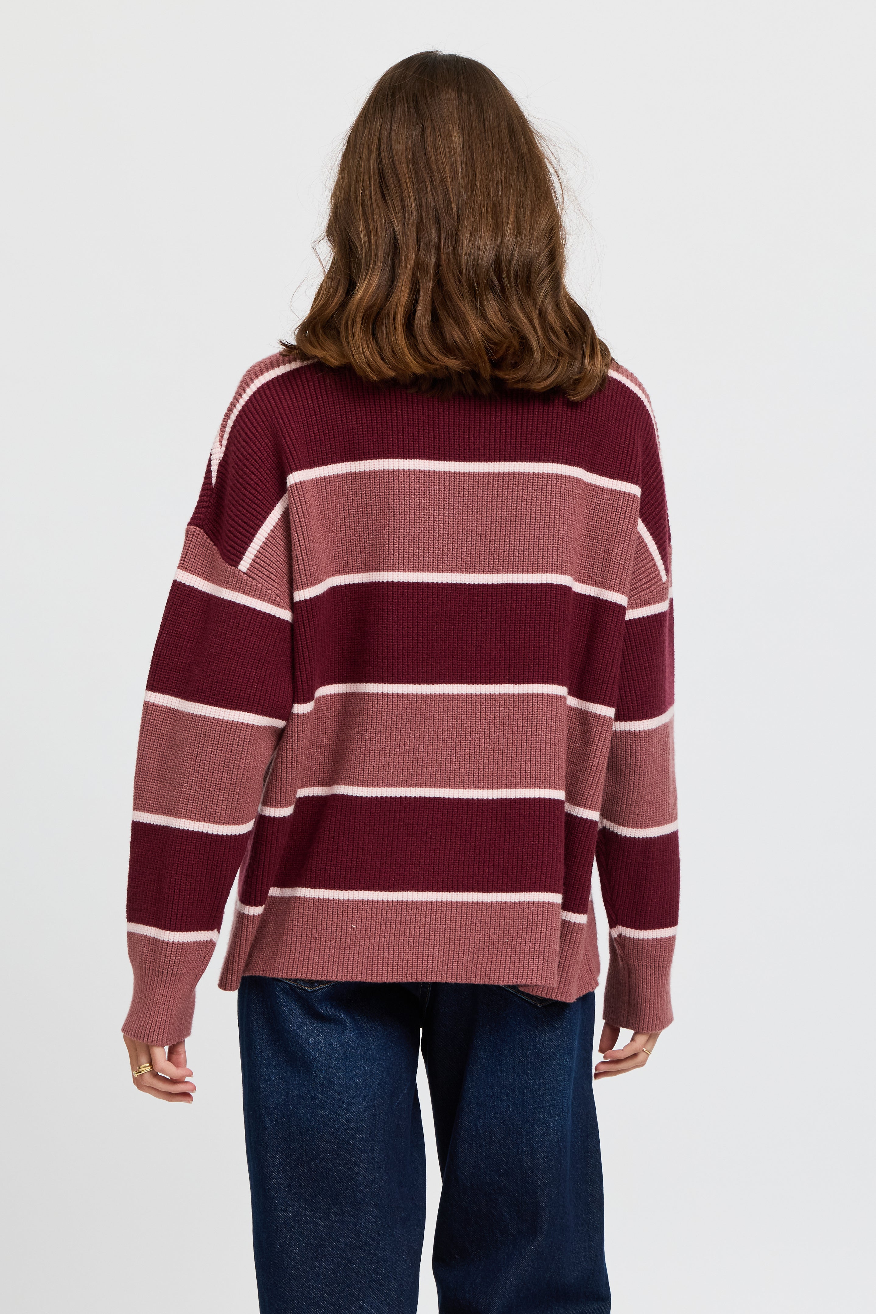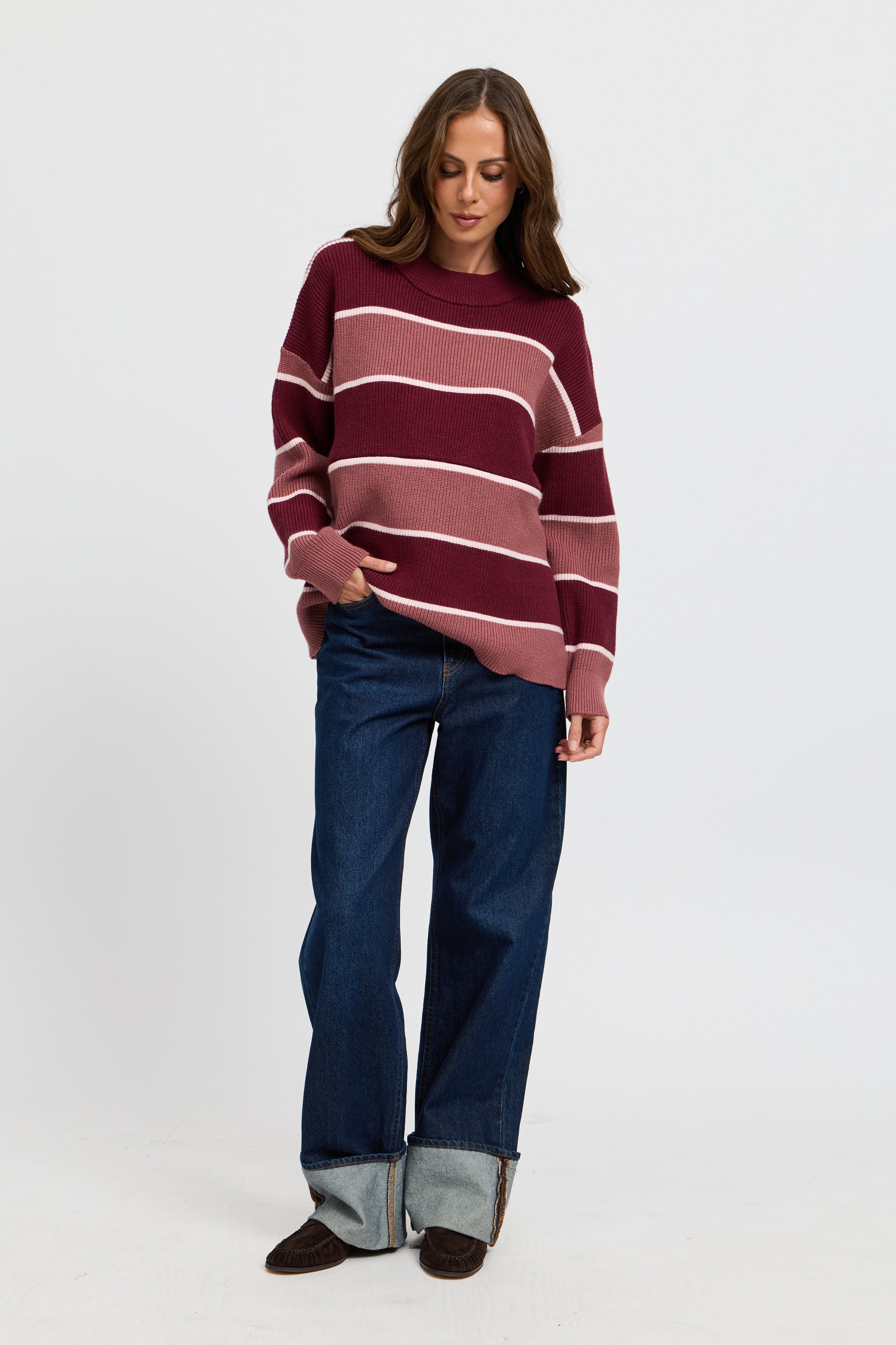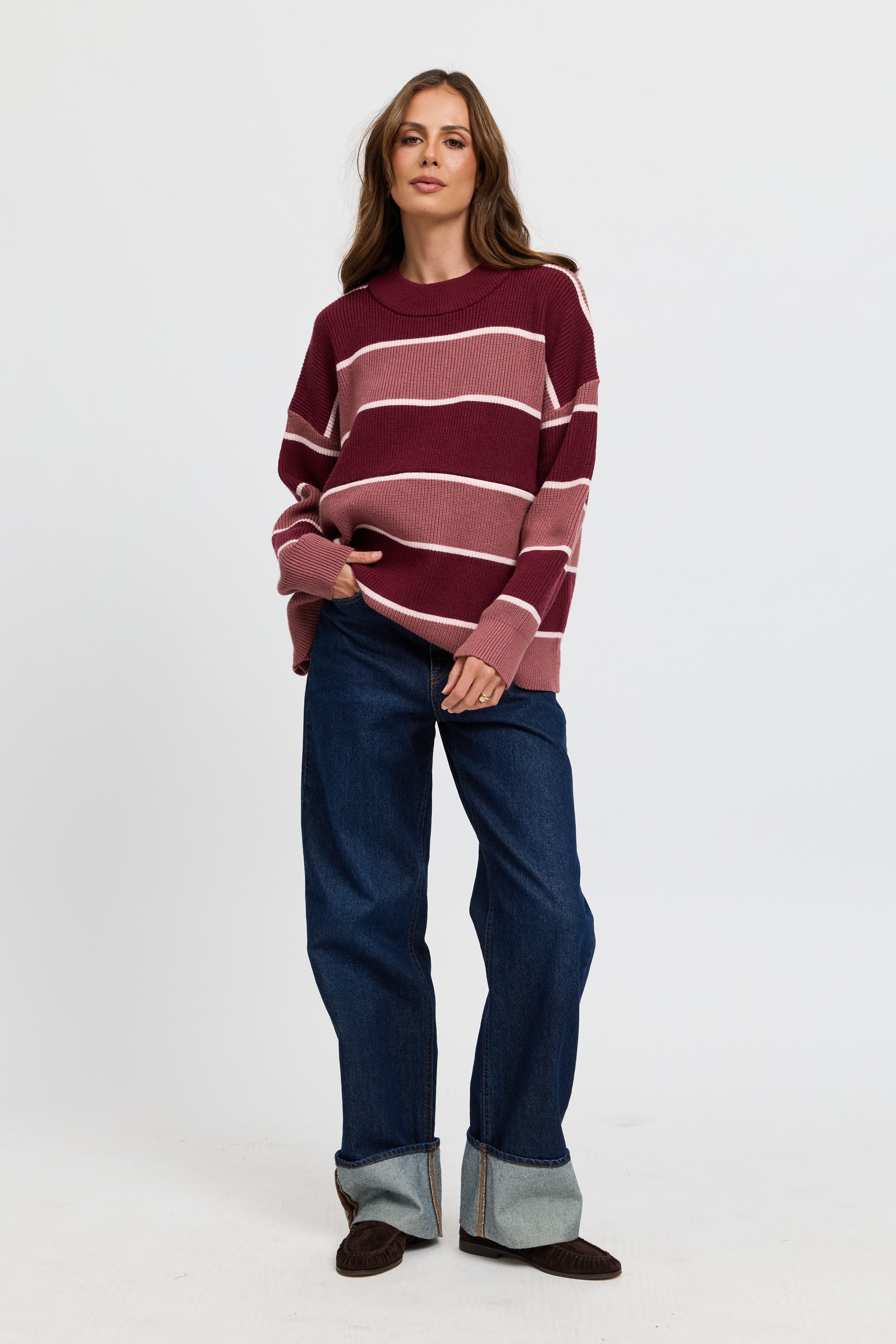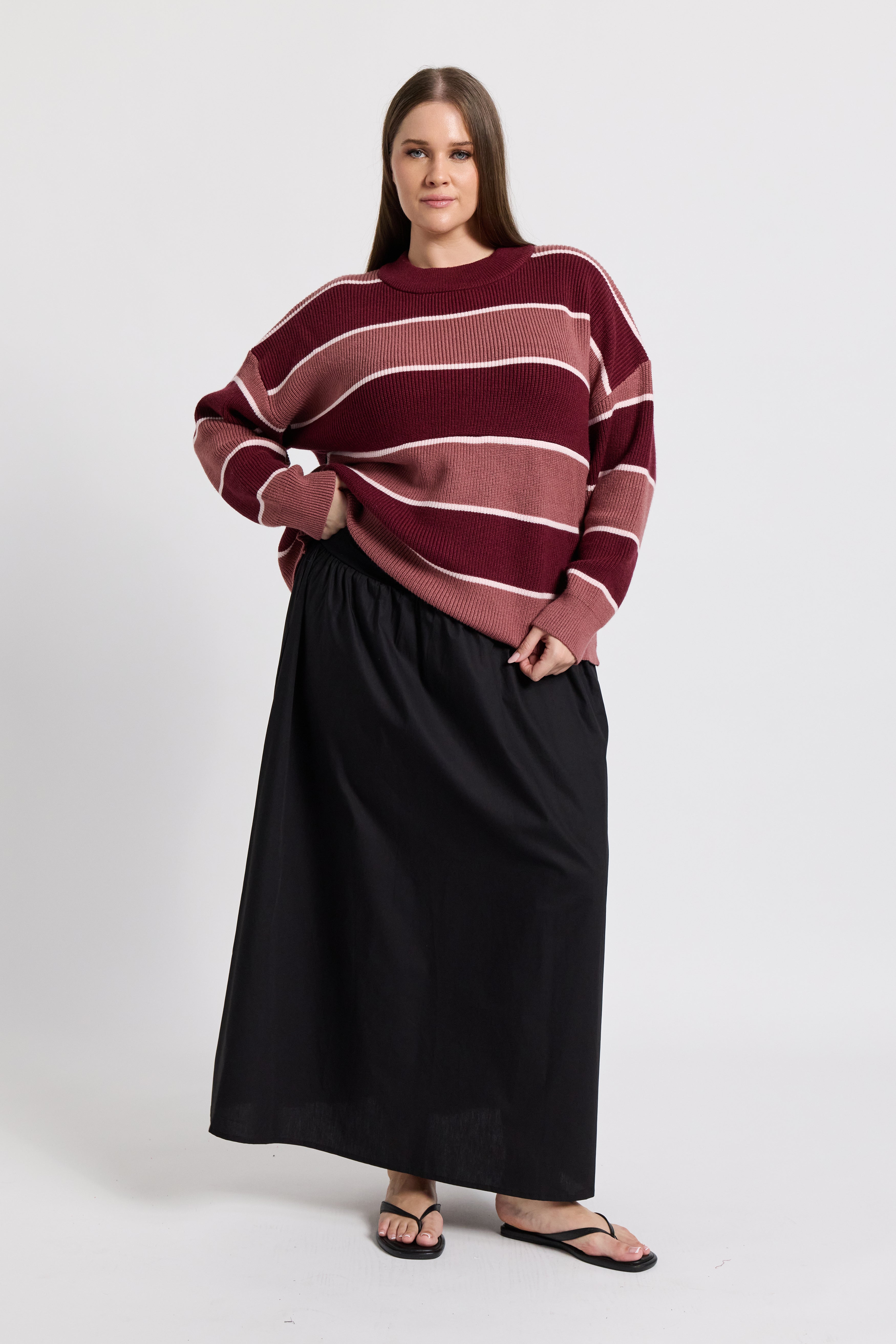 Sasha Stripe Knit Jumper - Burgundy / Strawberry