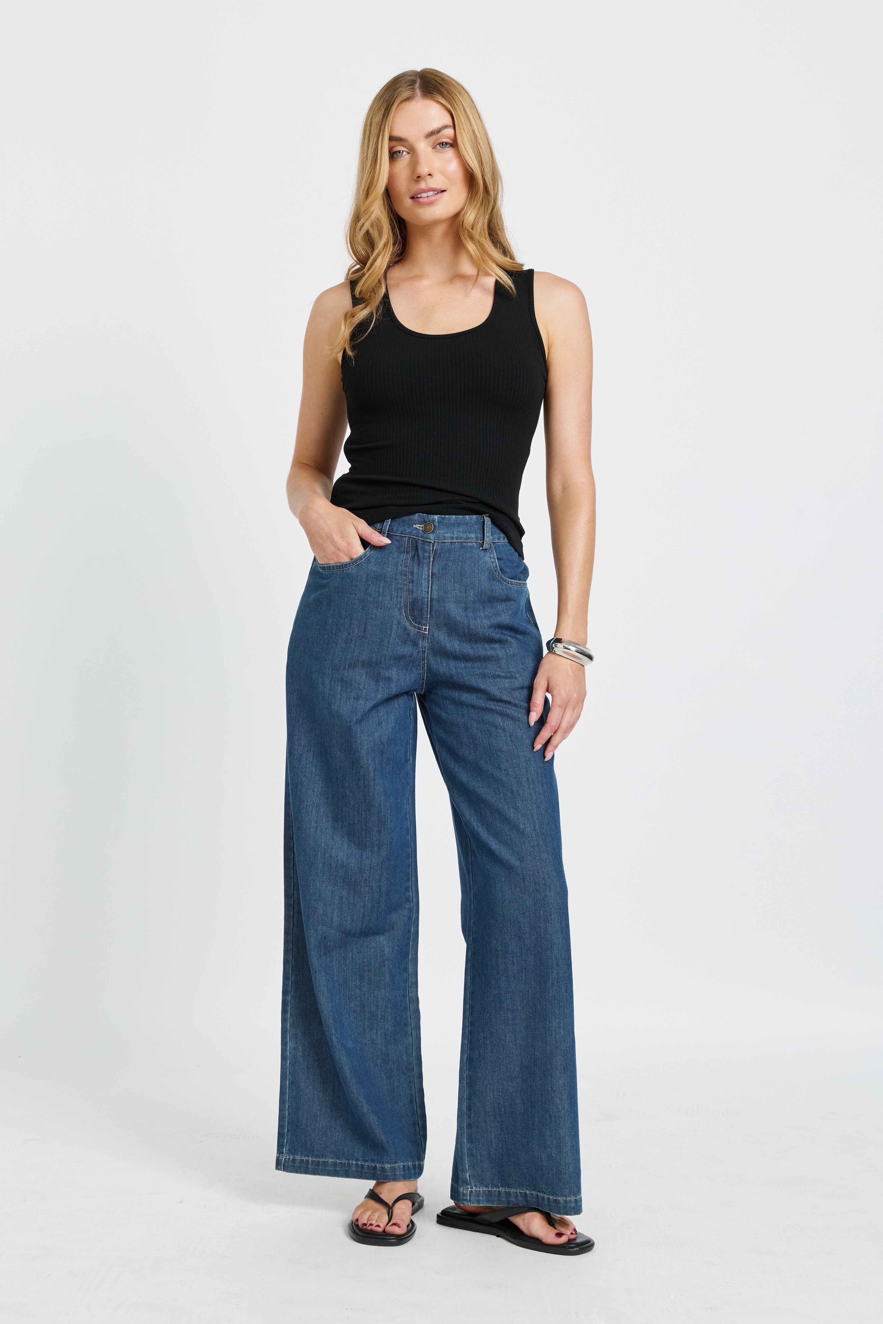 Anderson Adjustable-Waist Wide Leg Jean - Medium Blue