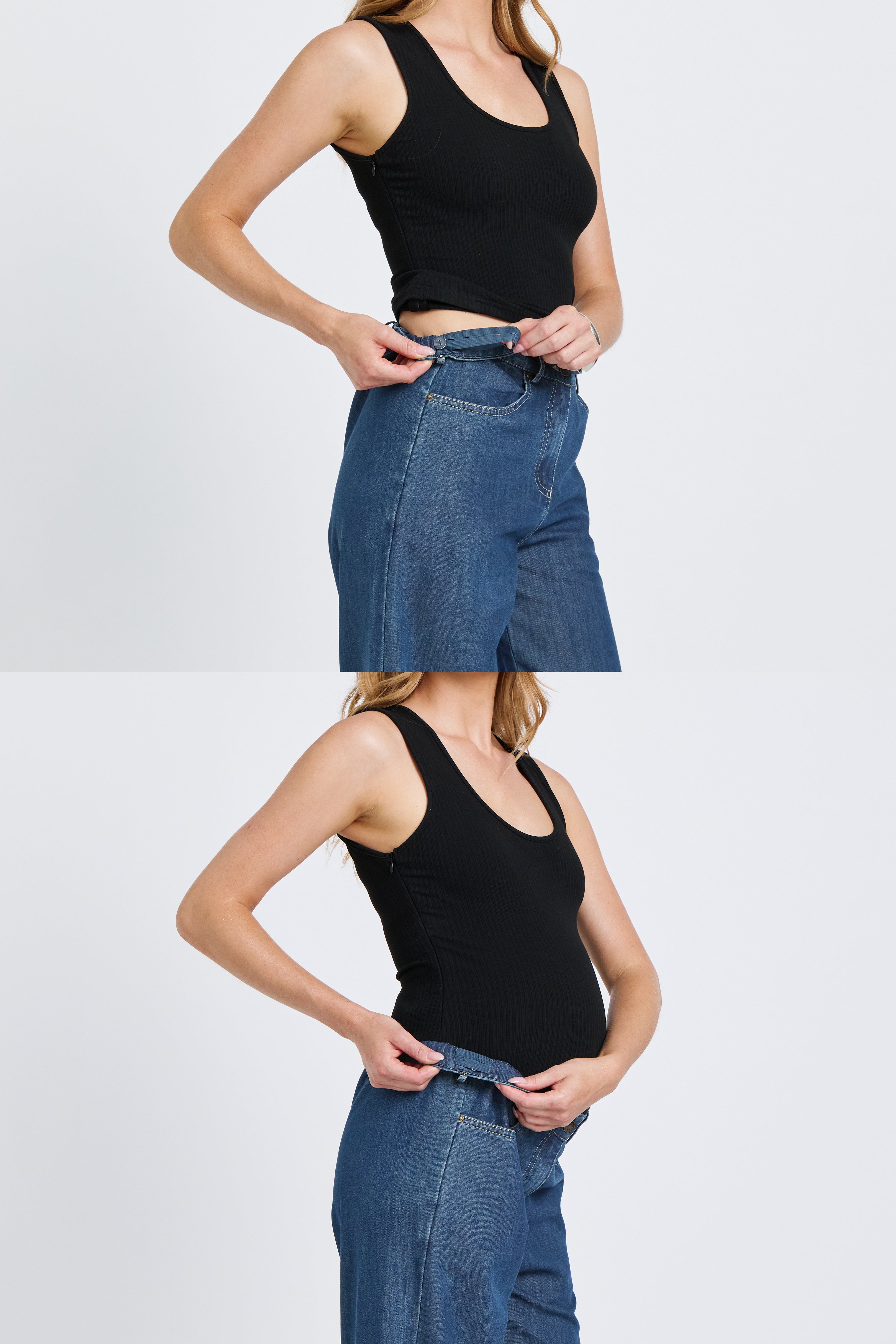 Introducing the Anderson Adjustable-Waist Wide Leg Jean in Medium Blue — a reimagined approach to denim designed to move with you through pregnancy, postpartum, and every stage beyond. Created from the belief that denim should adapt to the natural fluctuations of a woman’s body, this style offers a long-term wardrobe solution without compromising on fit or style.