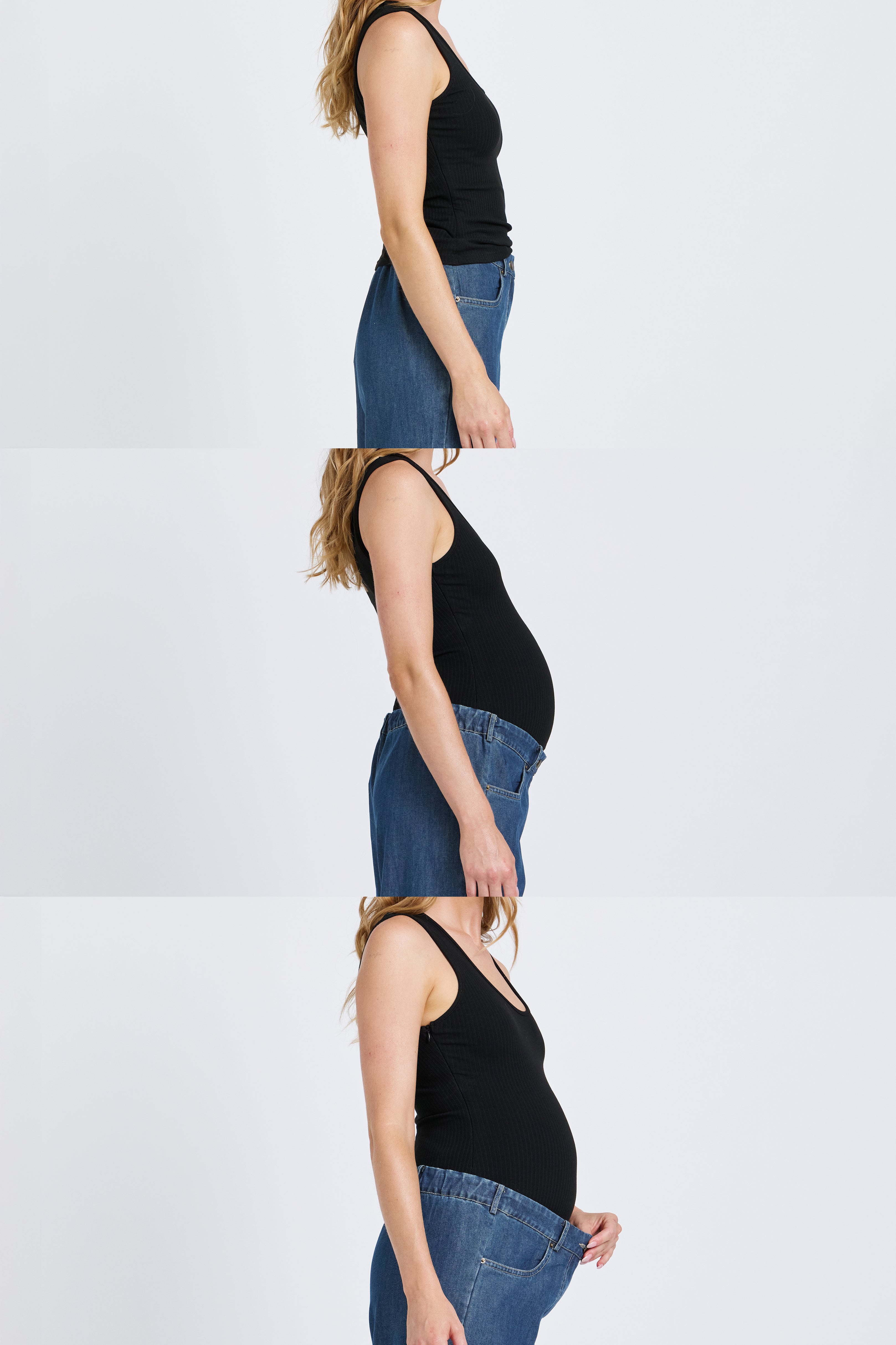 Thoughtfully engineered with a fully adjustable waistband, this jean allows you to customise the fit as your body changes — expanding for a growing bump and cinching back for post-partum and beyond. Internal buttonhole elastic at the back waist creates a flexible, personalised fit, while maintaining a flattering, true-to-size silhouette through the hips and thighs.