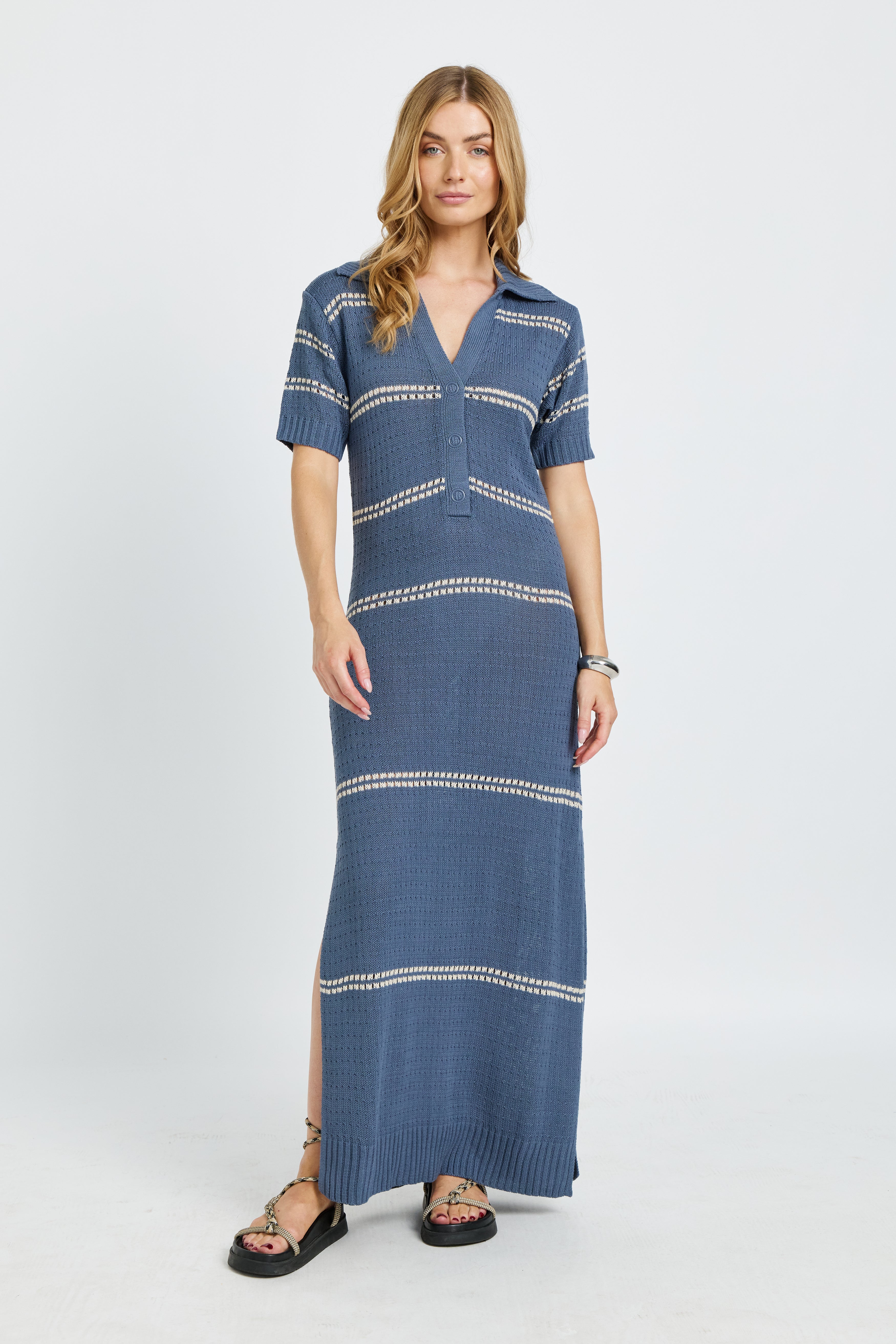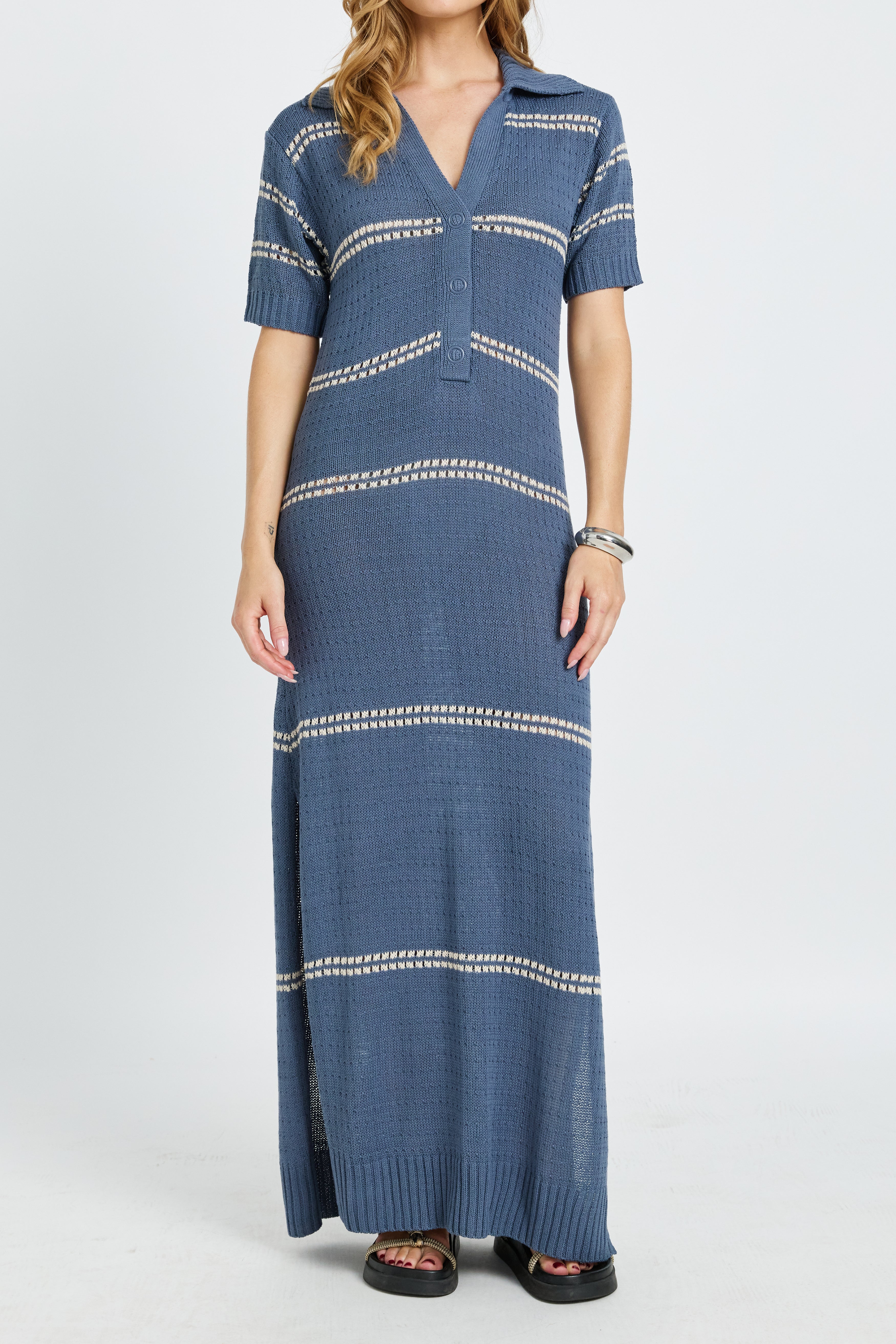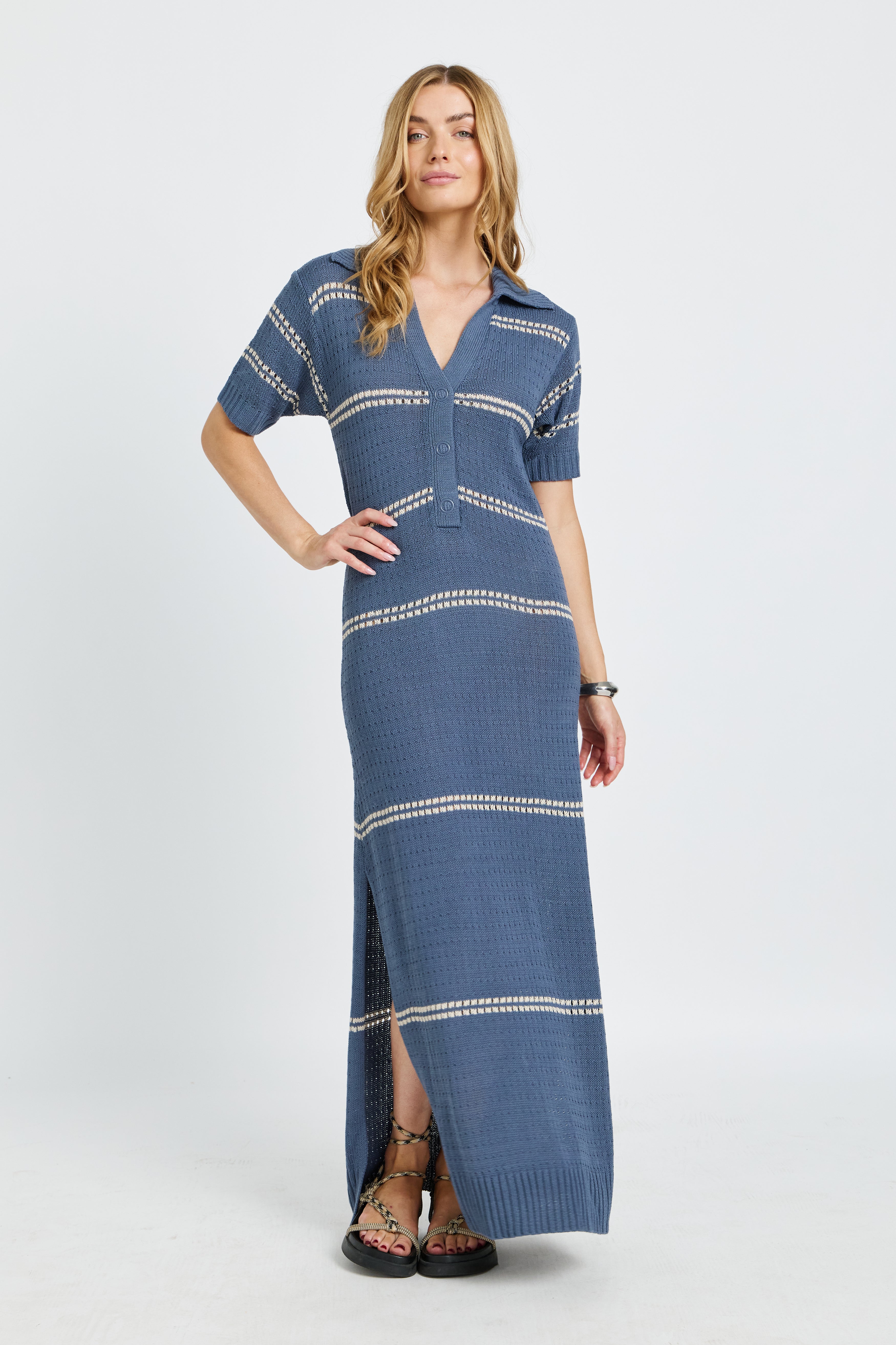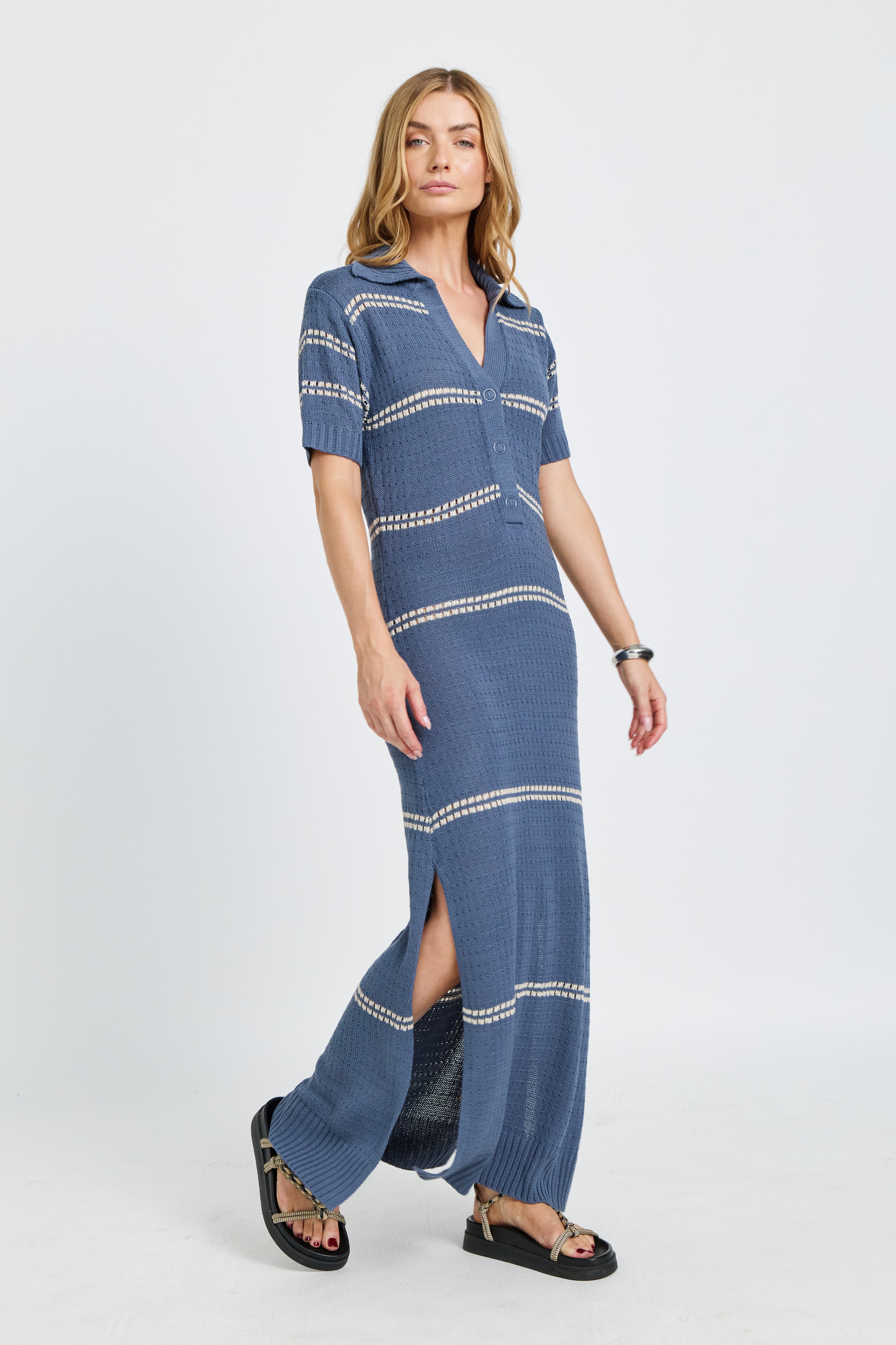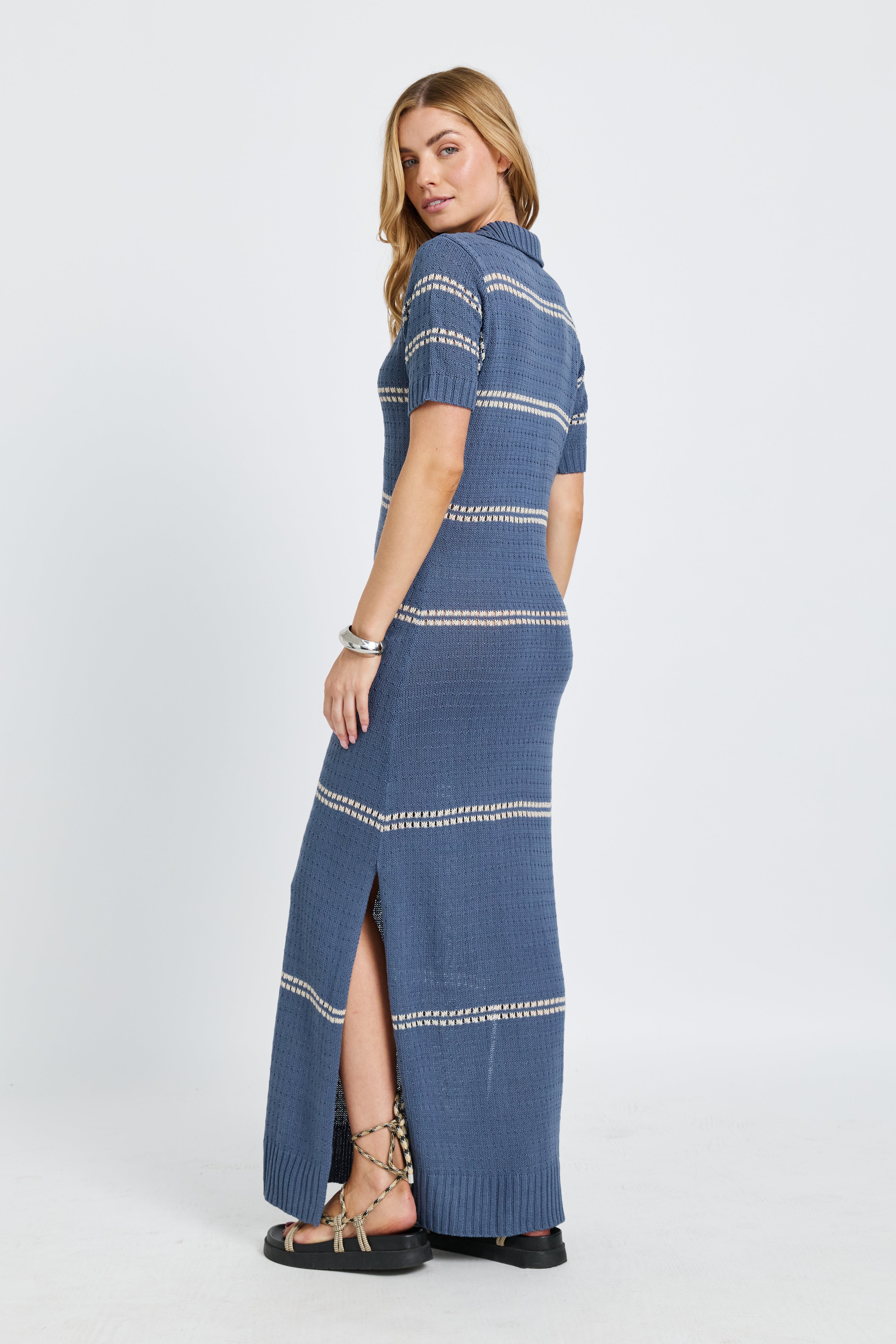 Bora Bora Knit Maxi Dress - Steel Blue / Cream