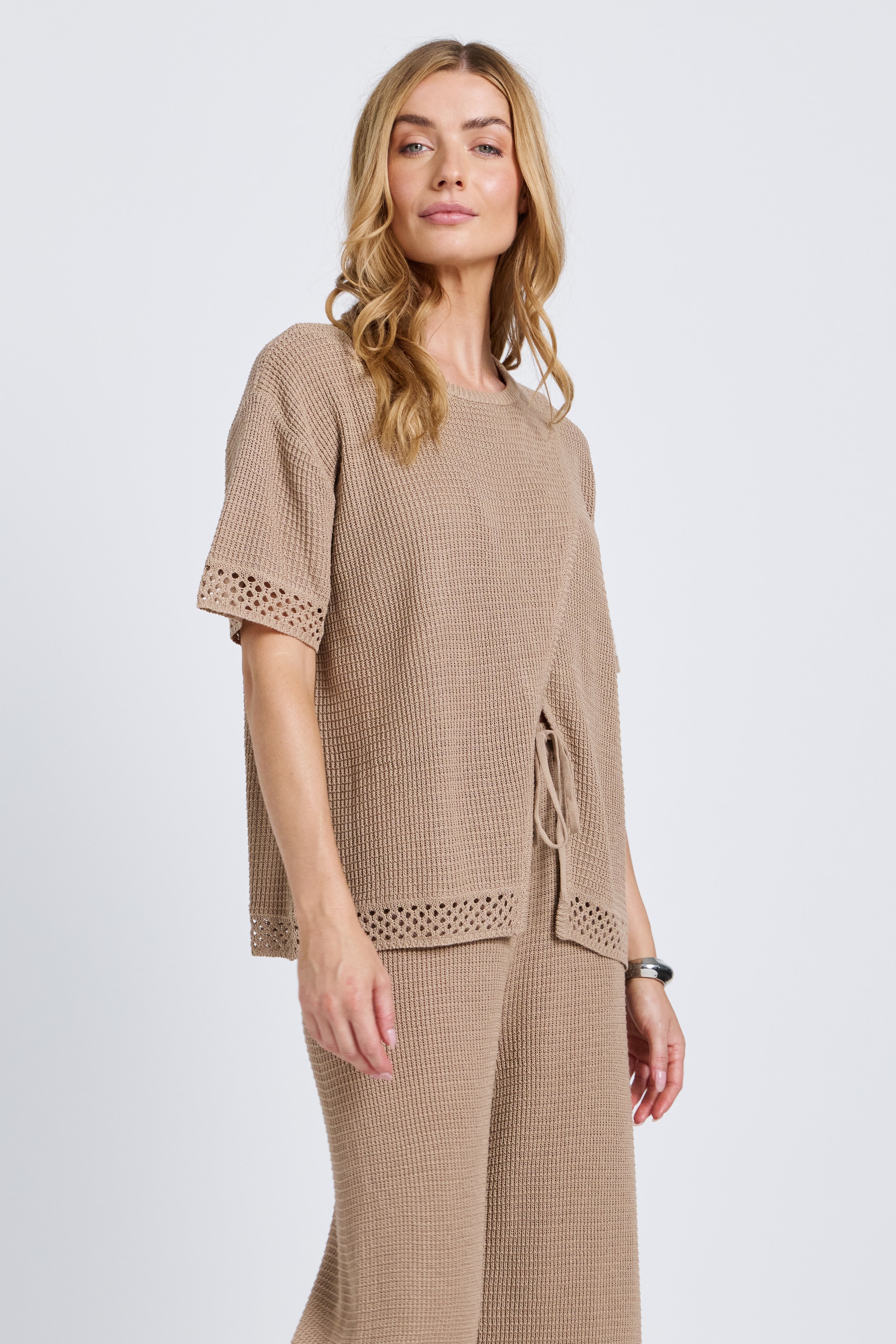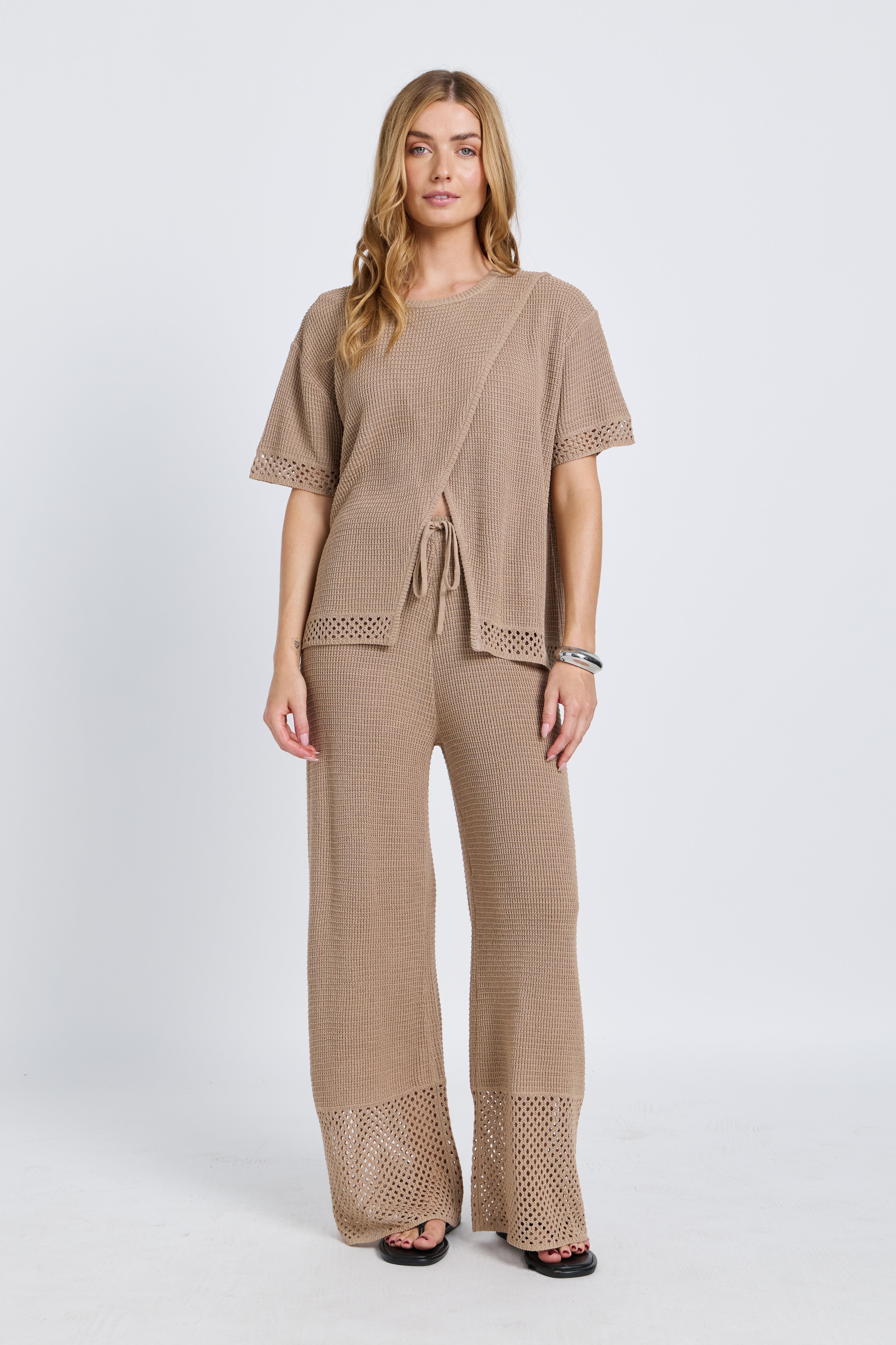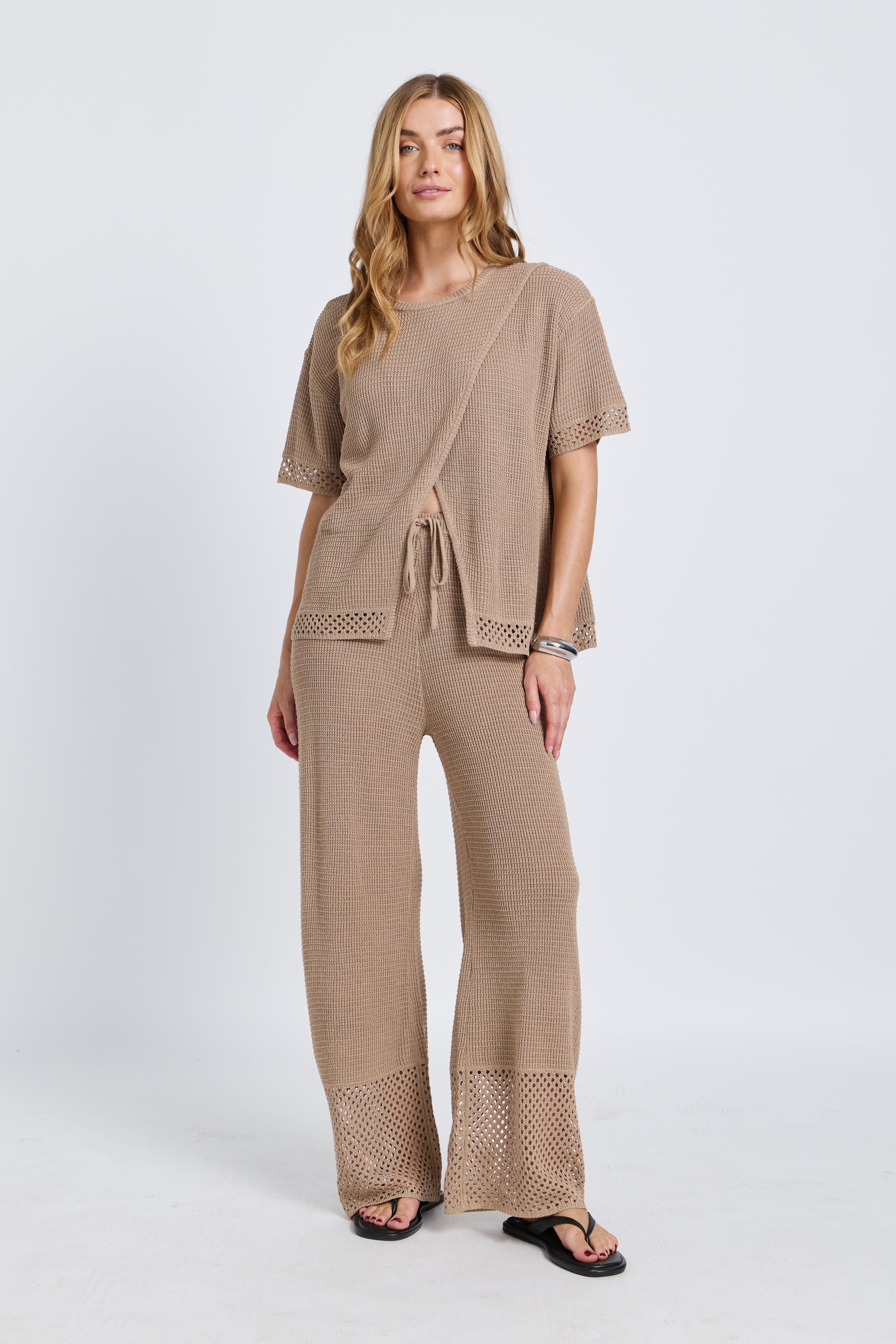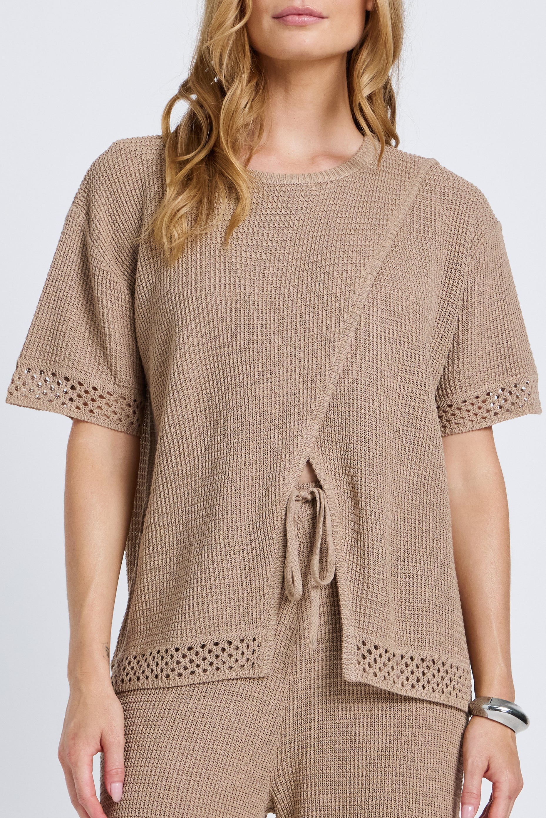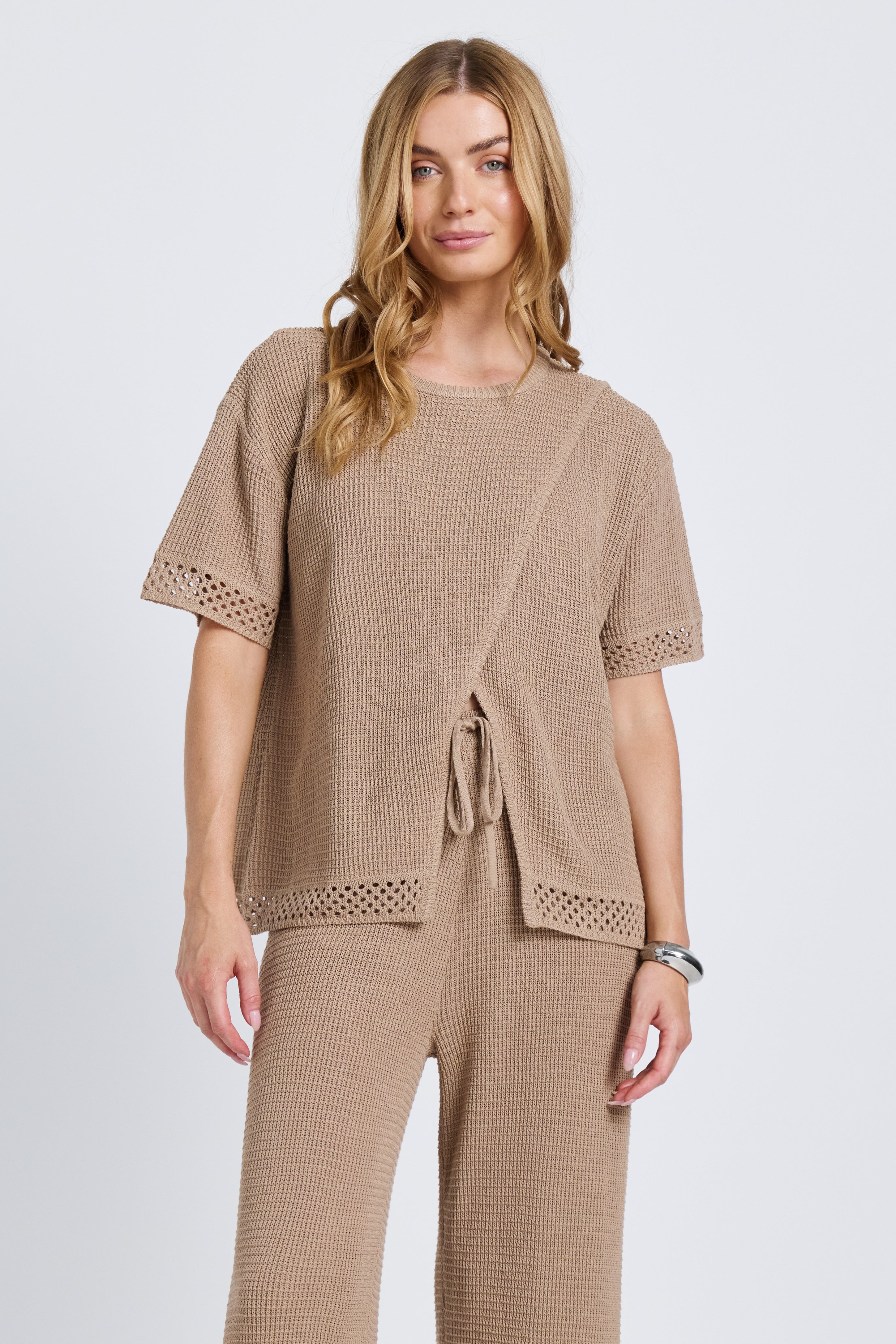 Evi Knit Wrap Tee - Stone Beige